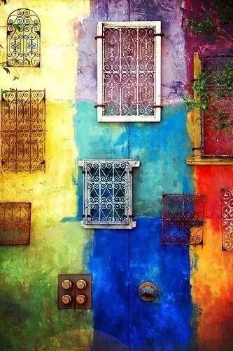 欧洲小镇的墙上被涂上了彩色的颜料,唯美浪漫。