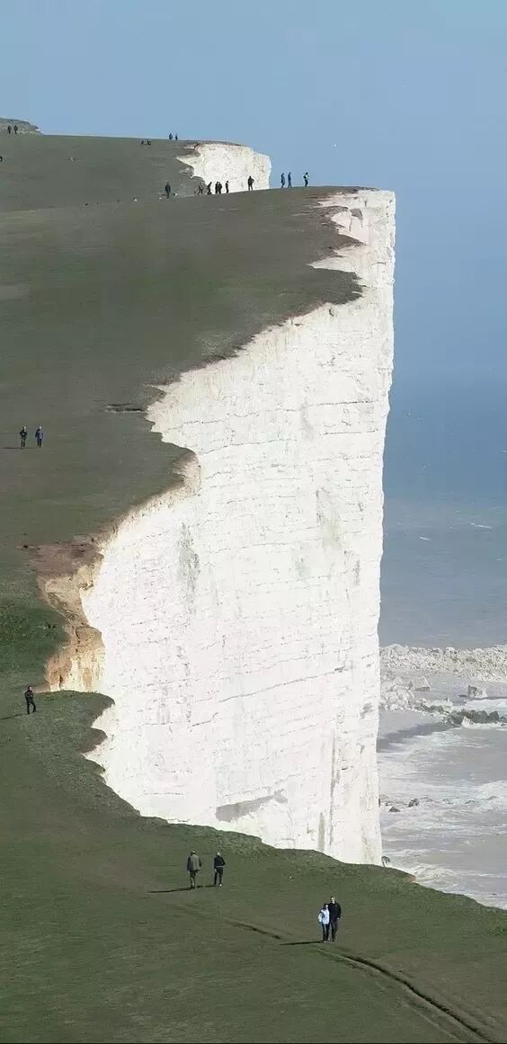 英格兰的伊斯特本东萨塞克斯郡, 海边有一处高高的悬崖,附近的人们常来这里散步,你敢吗?