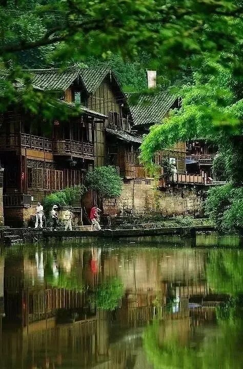 四川上栗县,郁郁葱葱的林木和木楼,仿佛一个不被打扰的世外桃源。