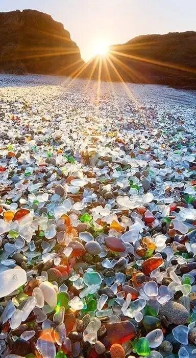 满是玻璃的海滩,这个地方原本是垃圾场,经过海水的长期冲刷后,玻璃都变成了漂亮有光泽的圆形,在阳光下璀璨夺目。
