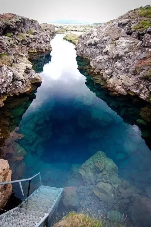 冰岛的一处河流,沿着楼梯走下去,会发现什么奇妙的地方吗?
