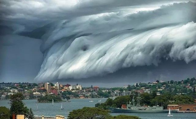 惊人的“云海啸”席卷悉尼的城市上空。
