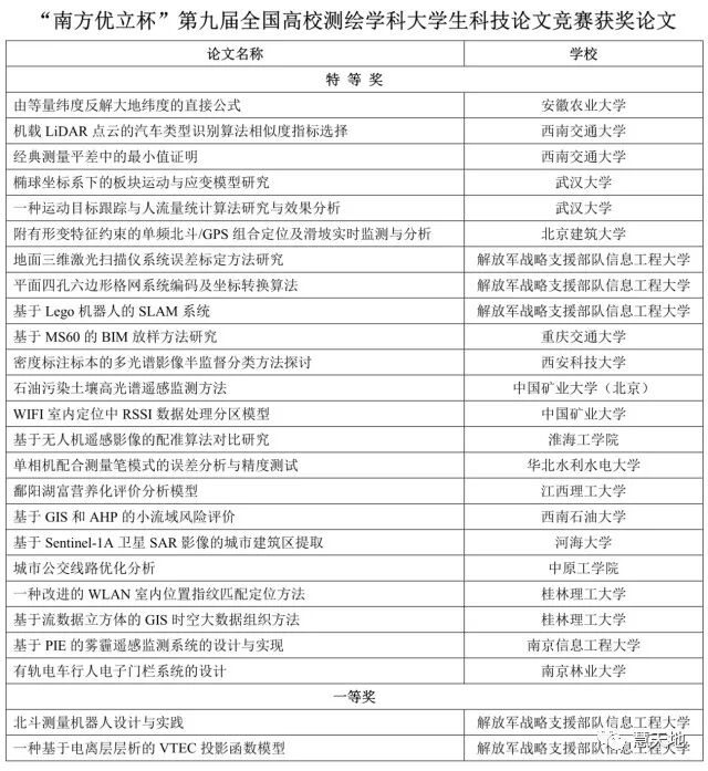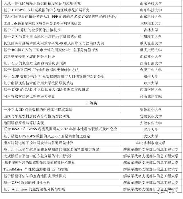 2017年度夏坚白测绘事业创业与科技创新奖获奖名单