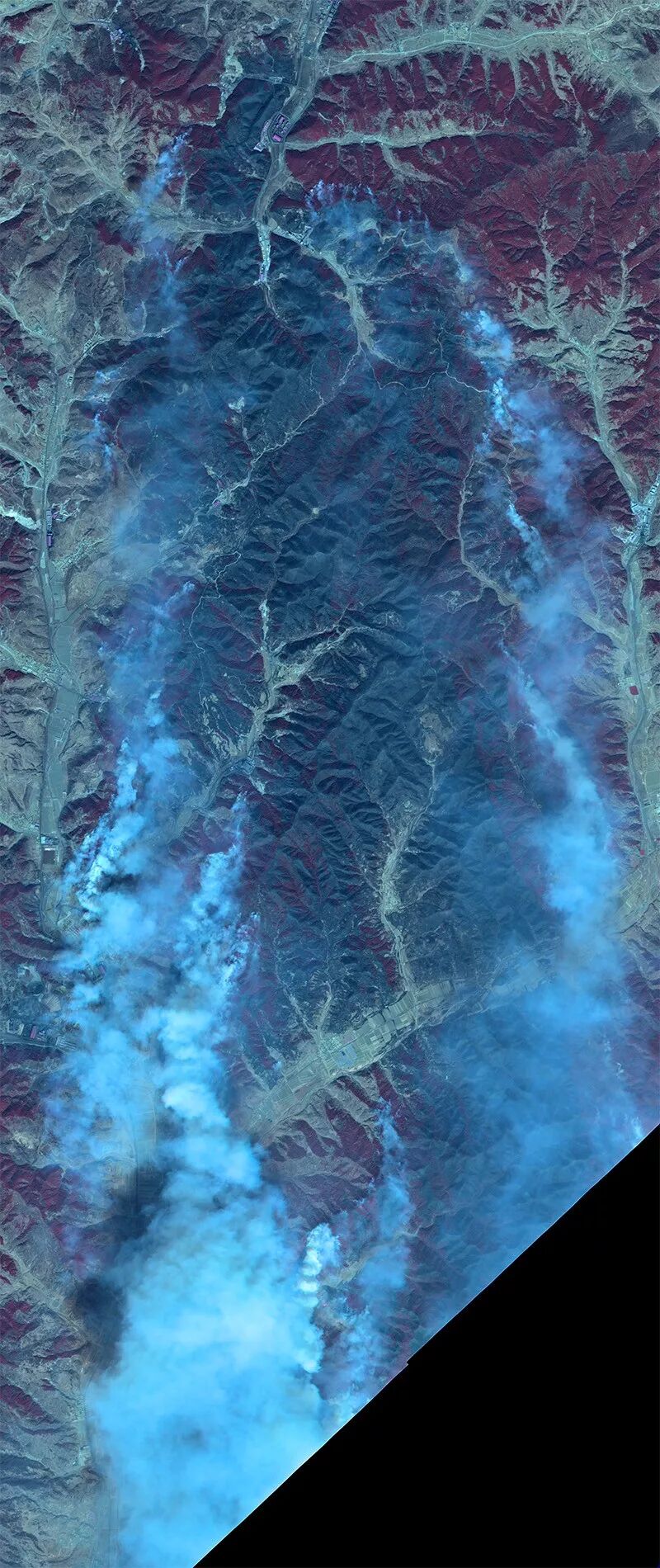 下面是30日中午卫星拍摄的火场的部分(这次的火场真的很大),并且做了顺时针旋转35度以适应网络媒体发布。