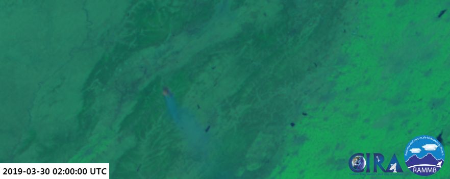 下面是葵花气象卫星的合成影像,说明了火情的变化趋势。