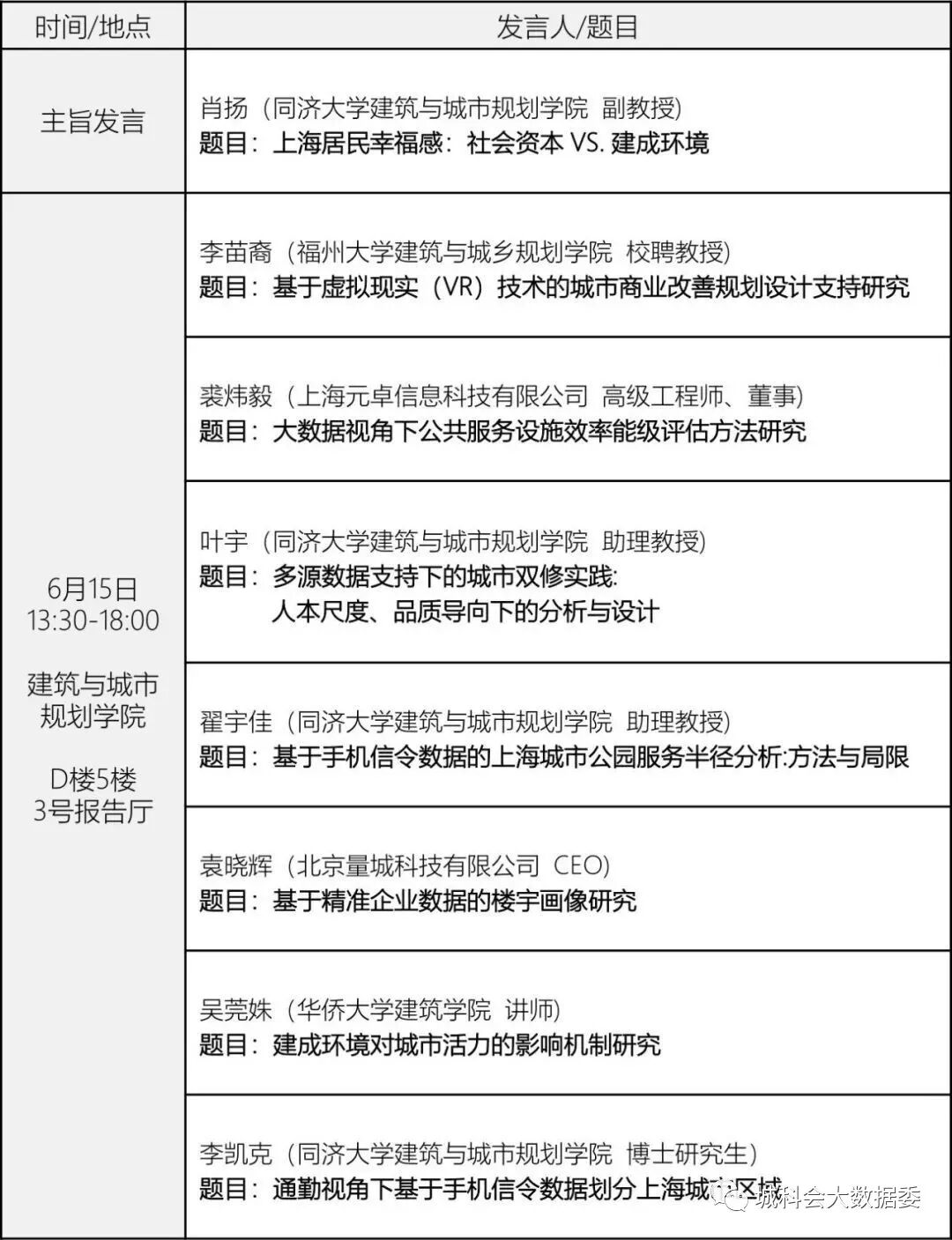 为进一步促进城市大数据相关研究的理论和应用拓展,交流相关领域新理论、新问题、新方法等方面的研究成果,将于2019年6月14日(周五)至15日(周六),在上海同济大学举办中国城市科学研究会城市大数据专业委员会2019年会。热烈欢迎从事城乡规划、地理学、社会学、城市经济等相关领域的专家、学者和企事业代表莅临与会。