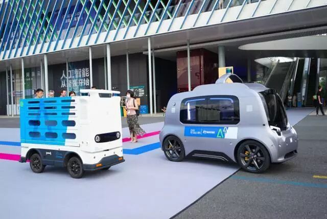 2018年9月19日杭州云栖大会开幕,菜鸟ET物流实验室在现场发布了两款新零售物流无人车,车上分别搭载了刷脸取件柜、零售货架等。