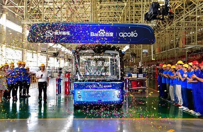 在2018年7月4日的百度 AI 开发者大会上,百度集团的创始人李彦宏宣布作为全球首款的L4 级量产自动驾驶巴士‘阿波龙’已经量产下线,目前也已投入到多个园区的运营中。