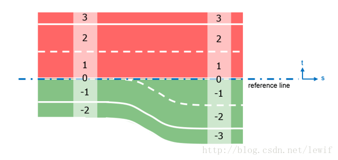 一个road中包含了很多的车道lane(lanes),而车道(lane)本身有宽度(width),以及虚线、实线等属性参数(roadMark)。结合这些参数,我们就能在reference line的基础上将车道画出来。