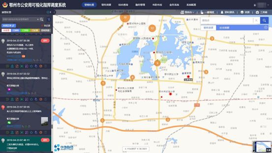 2019年6月,鄂州市公安局“两中心一体化”项目荣获中国地理信息产业优秀工程金奖。而此前一个月的第二届中国警务信息化建设成果推介活动研讨会上,中地数码凭借该项目从全国两百多个项目方案中脱颖而出,荣获“最佳融合智能指挥调度解决方案”奖项。鄂州市公安局“两中心一体化”项目将GIS、大数据、物联网、移动互联等信息化技术和公共安全领域新技术、新理念的发展成果充分融合,创立了集情报、指挥、勤务、舆情于一体的智慧新指挥体系,实现了常态、重大、专项三类警情模式全覆盖,创造了一系列亮点: