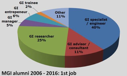 人们对数字地理信息的需求日益增长,这促进了地理信息科学学科的迅猛发展。硕士毕业后,您可以继续您的科研学术生涯。如果选择了为企业工作,则可以担任地理信息系统顾问,地理信息经理,地理信息分析学家等职位。地理信息科学专业的毕业生具有良好的职业前景。我们的许多毕业生有很多从事研究工作,例如继续攻读博士或是在全世界的研究机构中从事科研任务。还有许多人被聘为Royal Haskoning,Arcadis和Grontmij等跨国公司的技术专家,顾问或项目负责人。也有些毕业生为地方其他机构或中央政府机构和非政府组织工作(主要包括环境评估计划等方面)。