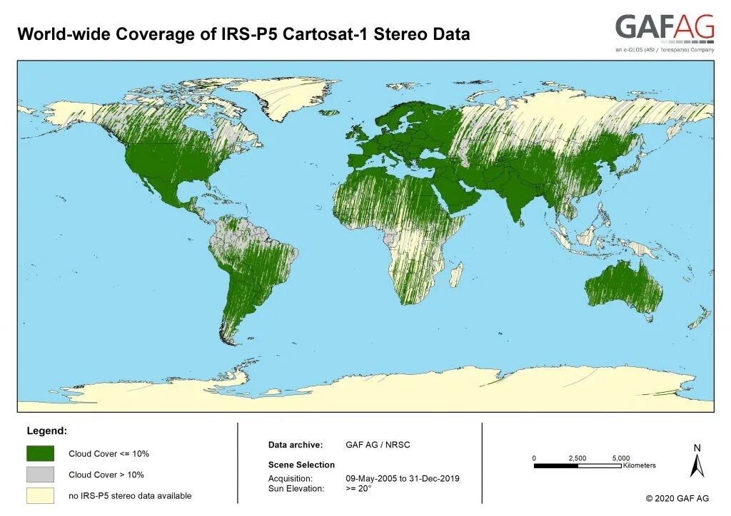 图2:Cartosat-1 (IRS-P5)卫星数据的全球覆盖图