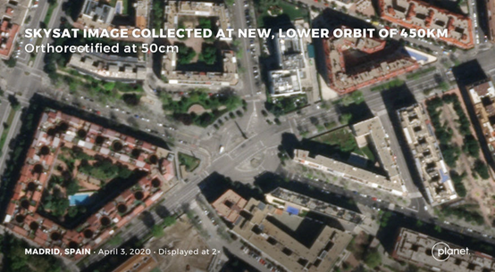 通过将SkySats从500公里的高度降至450公里,Planet将正射影像的分辨率从80厘米提高到50厘米。