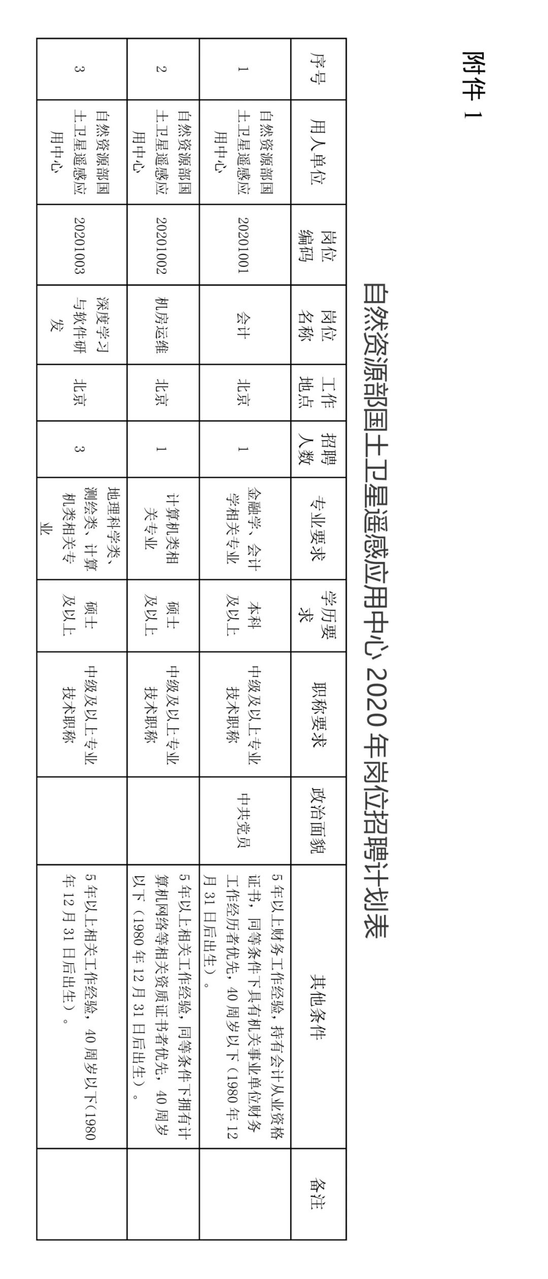 自然资源部国土卫星遥感应用中心2020年公开招聘工作人员公告