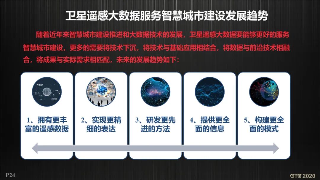 在GTC 2020『西安分布式会场』上,自然资源陕西省卫星应用技术中心所长杨帅分享了《卫星遥感大数据服务智慧城市建设》报告,他认为随着我国“部—省—市—县”的卫星遥感综合服务体系的进一步推广,卫星遥感技术必将成为美丽中国建设的主要发力点,大数据分析技术、高性能计算技术和深度学习技术以及遥感数据的应用逐渐成为智慧城市建设的主流手段。