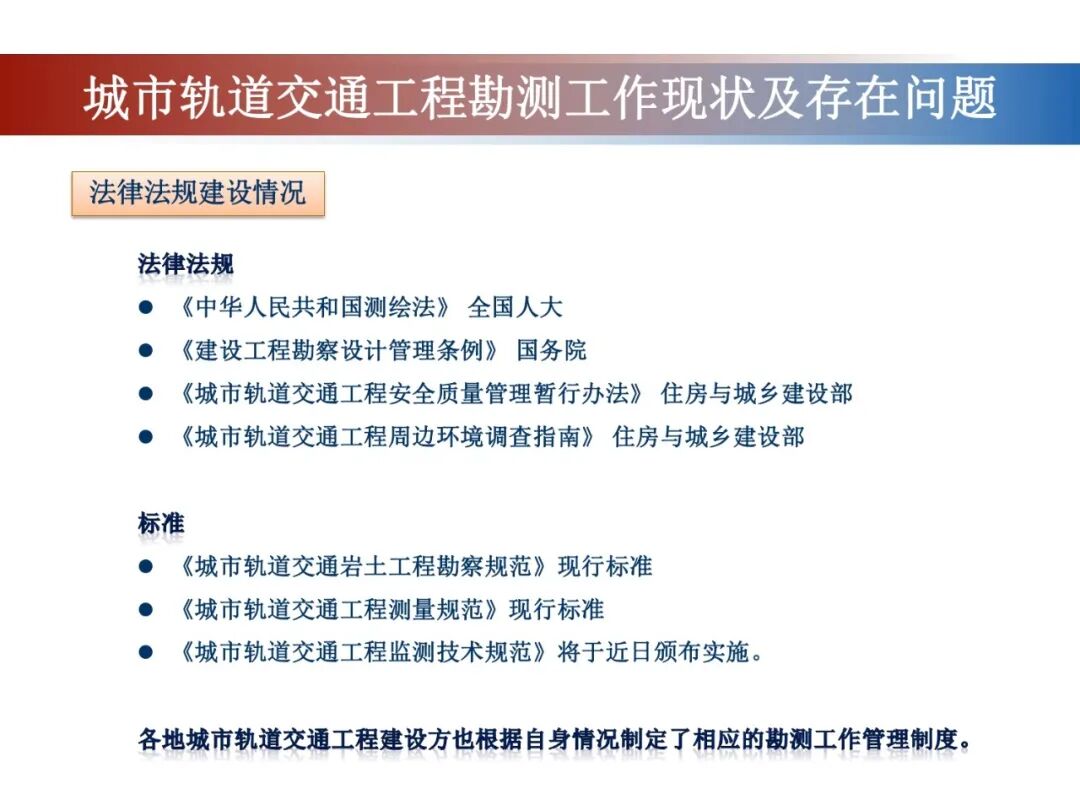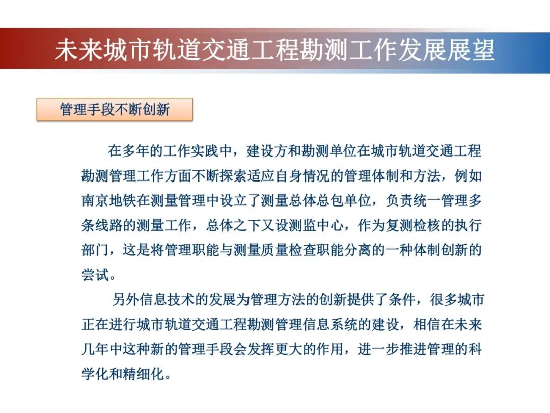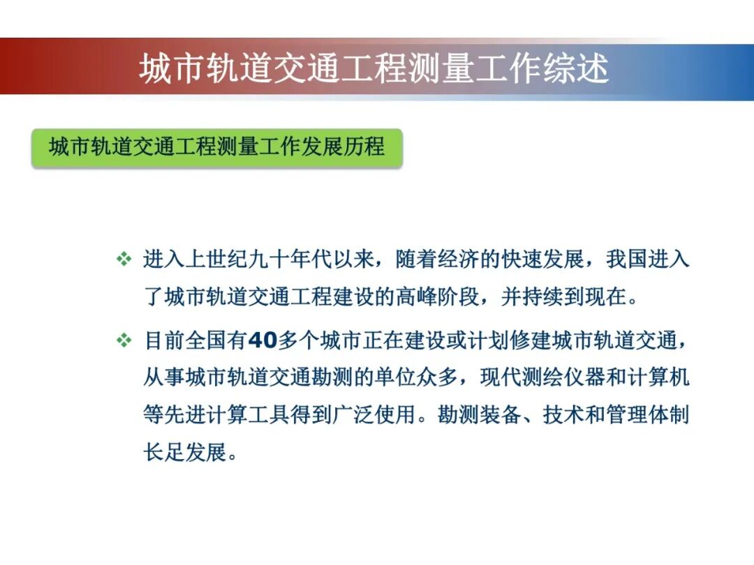 《大国工程测量技术创新与发展》在中国测绘学会指导下,工程测量分会牵头,组织委员单位、100余位专家共同编写。本次分享北京城建勘测设计研究院有限责任公司副总工程师、教授级高工陈大勇报告的大国工程测量——城市轨道交通工程测量工作现状与展望内容。供大家学习交流!