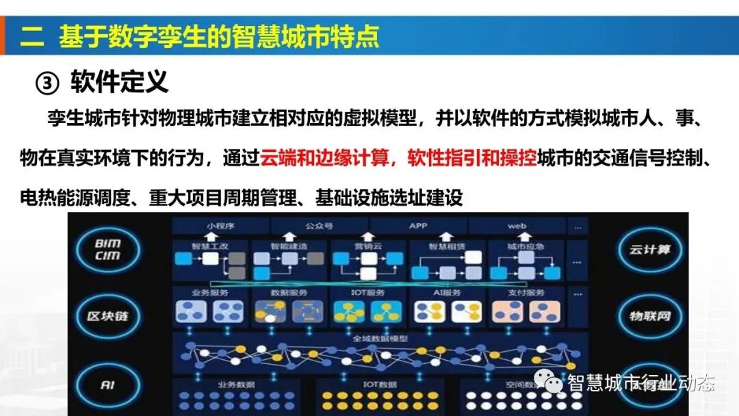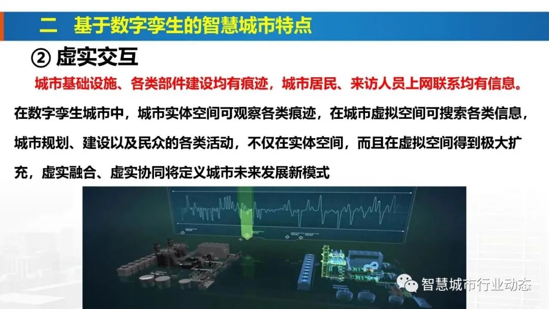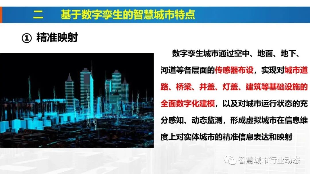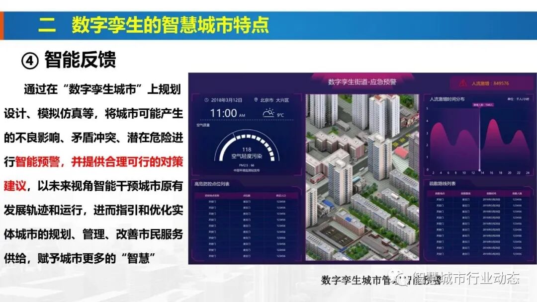 4、数字孪生城市通过构建城市物理世界、网络虚拟空间的一一对应、相互映射、协同交互的复杂巨系统,在网络空间再造一个与之匹配、对应的“孪生城市”,实现城市全要素数字化和虚拟化、城市全状态实时化和可视化、城市管理决策协同化和智能化,形成物理维度上的实体世界和信息维度上的虚拟世界同生共存、虚实交融的城市发展格局,是数字孪生技术在城市层面的广泛应用
