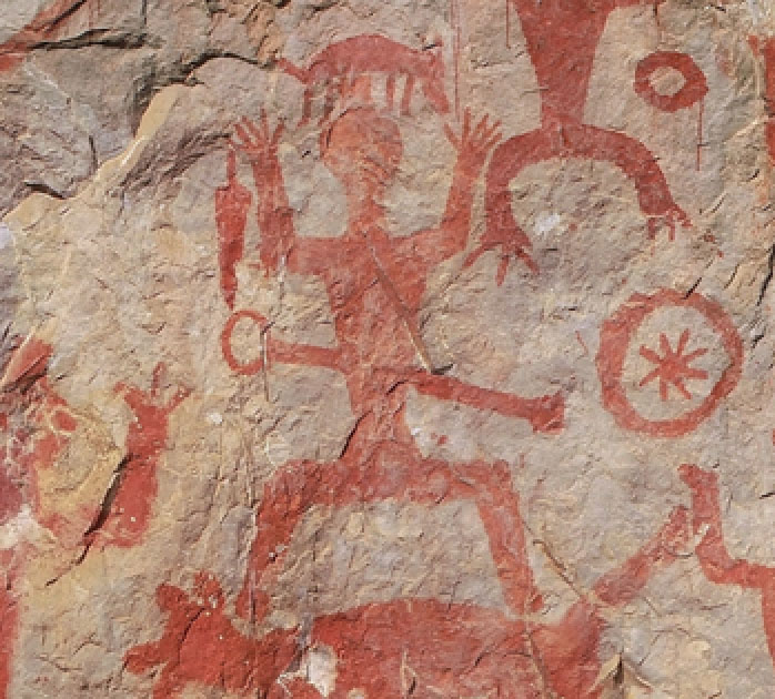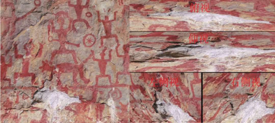 建图航拍需飞行10 min,5条航线共获取正射照片57张。航飞完成即可用移动PC工作站现场处理数据,生成DSM地表模型数据、DOM正射影像及实景三维粗模(见图2)。此次精细航线规划使用航迹大师(WayPoint Master)软件进行规划。为了更真实地展示花山岩画,笔者重建的模型分辨率为1 mm,选用大疆经纬M3OOR+禅思P1航测相机(4 500万像素)离崖面8 m等距拍摄。为了确保航飞安全又能实现模型分辨率的计划要求,笔者在现场进行了航线探测,对关键的危险航点逐一精确手控飞行探测。所有的关键点均能正常且稳定地接收到卫星信号,在消除其他的飞行安全隐患后进行航线规划。此次精细航线规划设置相机镜头俯仰角为−5°,其目的是让相机的曝光更准确,如果相机0°拍摄白色崖面容易造成图像过曝,损失细节的纹理,而将相机以−5°微俯拍摄到的画面细节更丰富,色彩也更加饱和。航迹大师(WayPoint Master)自动规划航线会根据崖面的凹凸情况计算出每个航点的准确距离,以及根据设计的航向和傍向重叠度准确地计算出曝光的时间点。大疆M300RTK无人机挂载4 500万像素的禅思P1航测相机在距离崖面8 m的正前方做自上而下的弓形自主飞行,逐帧对精美的岩画做全覆盖拍摄。规划的自动航线上窄下宽的形态完全适配崖面贴近飞行,总共设计53条航线,1 012个航点。航线速度设为1 m/s。(1)贴近航线飞行。经纬M300RTK遥控器理论上可以实现999个航点导入,为了减少遥控器的运算载荷,航迹大师(WayPoint Master)自动将航线规划成7个航线任务来完成。航线依次自上到下来执行,导出的任务文件加载到无人机遥控器便可以进行一键式智能自主飞行。面对复杂的飞行环境,在航线飞行过程中必须做好发生各种意外的准备。(2)手动补拍。此次作业受限于江边的树木,为确保飞行安全,必须避开树木等障碍物,因此手动补拍是必须进行的工作。此次手动补拍采用飞手+观察员双人组合的方式进行。飞手在观察员的安全指引下沿崖面谨慎飞行补拍。经过2天的飞行,此次共采集照片3 000余张,基本实现崖面多角度多方位全覆盖。采集到的各种数据经空三计算1 h左右完成,空三成果完整,模型生成12 h完成。生成模型的水面有漏洞和凹陷的问题,因此要进行模型修补和水面置平。此次三维重建一次通过。质量报告显示模型分辨率为1.12 mm,和航线设计的要求基本一致。整个崖面的模型完整,没有凹陷、空洞等问题,崖面影像曝光准确、光亮适中,岩画色彩丰富细腻,岩石表面细小裂缝清晰可见(见图3、图4)。此次运用贴近摄影测量技术对宁明花山岩画进行三维数字化,是大型户外文物数字化的一个全新尝试,也是目前为止对花山岩画三维数字化分辨率最高、采集面积最大、崖面结构最完整的一次。此次完成的超精细实景三维模型对文物的鉴赏及保护有重要的意义。未来贴近摄影测量将广泛地用于文物数字化及文物保护领域。华夏几千年的文明在美丽的山川大地上留下许许多多珍贵遗迹,这是人类共同的财产,需要大家共同去保护。贴近摄影测量在诸如岩画、摩崖石刻、佛窟、古寺、古塔等大型的历史遗迹进行三维数字化过程中发挥着重要的作用。贴近摄影测量在其他领域也有广泛的需求,如建筑施工、桥梁检测、水坝裂隙排查及电力行业。贴近摄影测量还存在一些不足,如受天气的影响较大、技术含量高等,无人机飞手需要具备良好的飞行操控能力,航线的规划也需要进行专业的分析。[1] 张瑞,骆岩林,周明全,等. 文物数字化的关键技术[J]. 北京师范大学学报(自然科学版),2007,43(2):150−153. [2] 李湘清,孙秀霞,彭建亮,等. 基于运动补偿的小型无人机云台控制器设计方法[J]. 系统工程与电子技术,2011,33(2):376−379. [3] 万辉,赖际舟,于明清,等. 航空摄影测量中POS系统高精度定位技术[J]. 测绘工程,2013(3):20−23, 27. [4] 言司. 独辟蹊径,不断创新 贴近摄影测量:第三种摄影测量方式的诞生——专访武汉大学遥感信息工程学院张祖勋院士[J]. 中国测绘,2019(10):1−5. [5] 张保明, 龚志辉, 郭海涛. 摄影测量学[M]. 北京: 测绘出版社, 2008. 作者简介: 罗飞(1979−),男,1999年毕业于郑州测绘学校,航空摄影测量专业,主要从事航空摄影测量工作,测绘工程师。