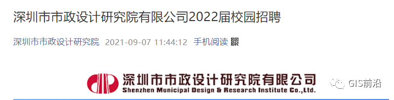 9月7日,深圳市市政设计研究院发布2022届校园招聘。9月开启线上、线下校园宣讲,本次招聘专业包含:地理信息科学,测绘工程,遥感科学与技术,地质工程,水文与水资源工程等