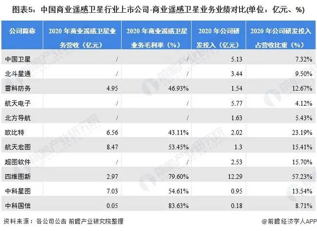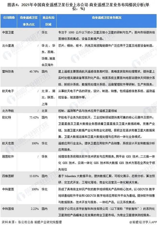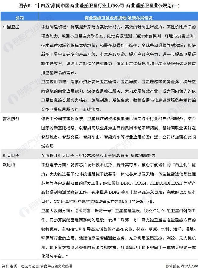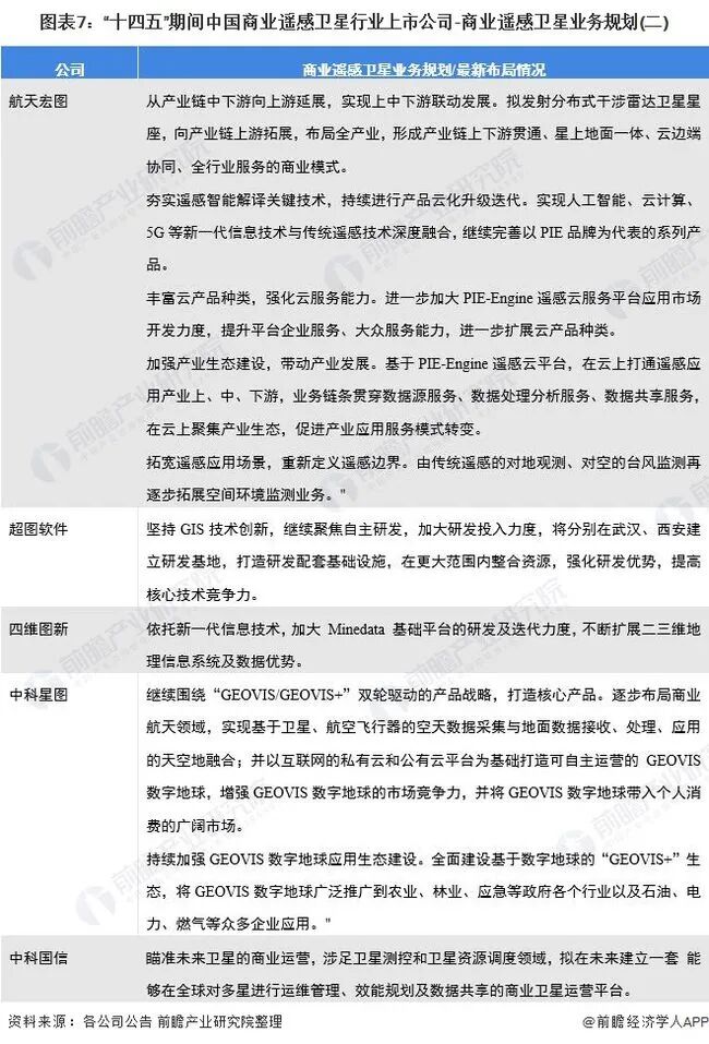 4、商业遥感卫星行业上市公司商业遥感卫星业务规划对比