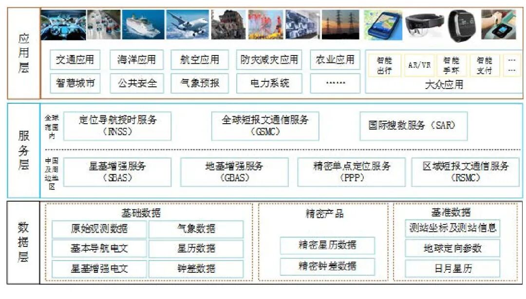 北斗系统是我国重要基础设施之一,按照“三步走”战略建设发展。北斗一号系统1994年启动建设。2000年,发射2颗地球静止轨道卫星(GEO)并投入使用,为国内用户提供定位、授时、广域差分和短报文通信服务。北斗二号系统2004年启动建设,2012年完成14颗卫星组网并投入使用,为亚太地区用户提供定位、导航、授时和短报文通信服务。北斗三号系统2009年启动建设,在北斗二号系统基础上,进一步提升性能、扩展功能,2020年6月完成30颗卫星组网,为全球用户提供导航定位和通信数传于一体的高品质服务。目前,北斗系统服务由北斗二号系统和北斗三号系统共同提供,2020年后将平稳过渡为北斗三号系统为主提供。