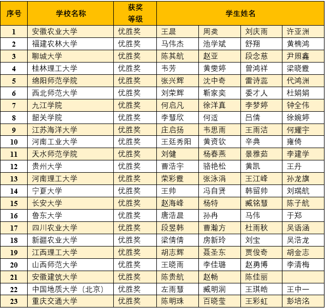 2021年11月26-28日,第十届全国大学生GIS应用技能大赛在南京信息工程大学顺利举行。167支来自全国各地高校的参赛队伍经过激烈角逐,14支参赛队伍获得特等奖,28支参赛队伍获得一等奖,44支参赛队伍获得二等奖,45支参赛队伍获得优胜奖,22位带队老师获优秀指导教师。