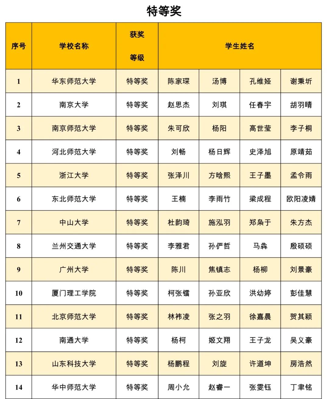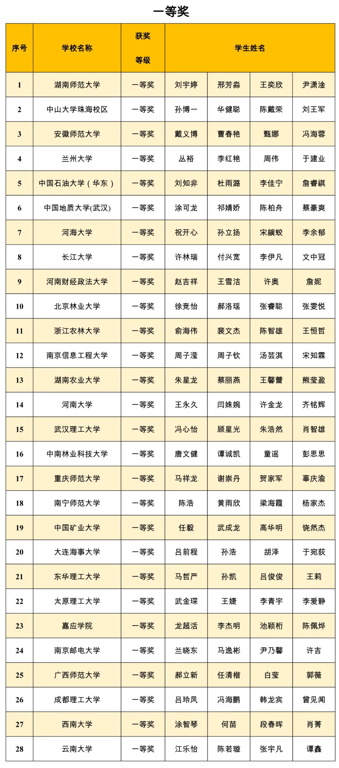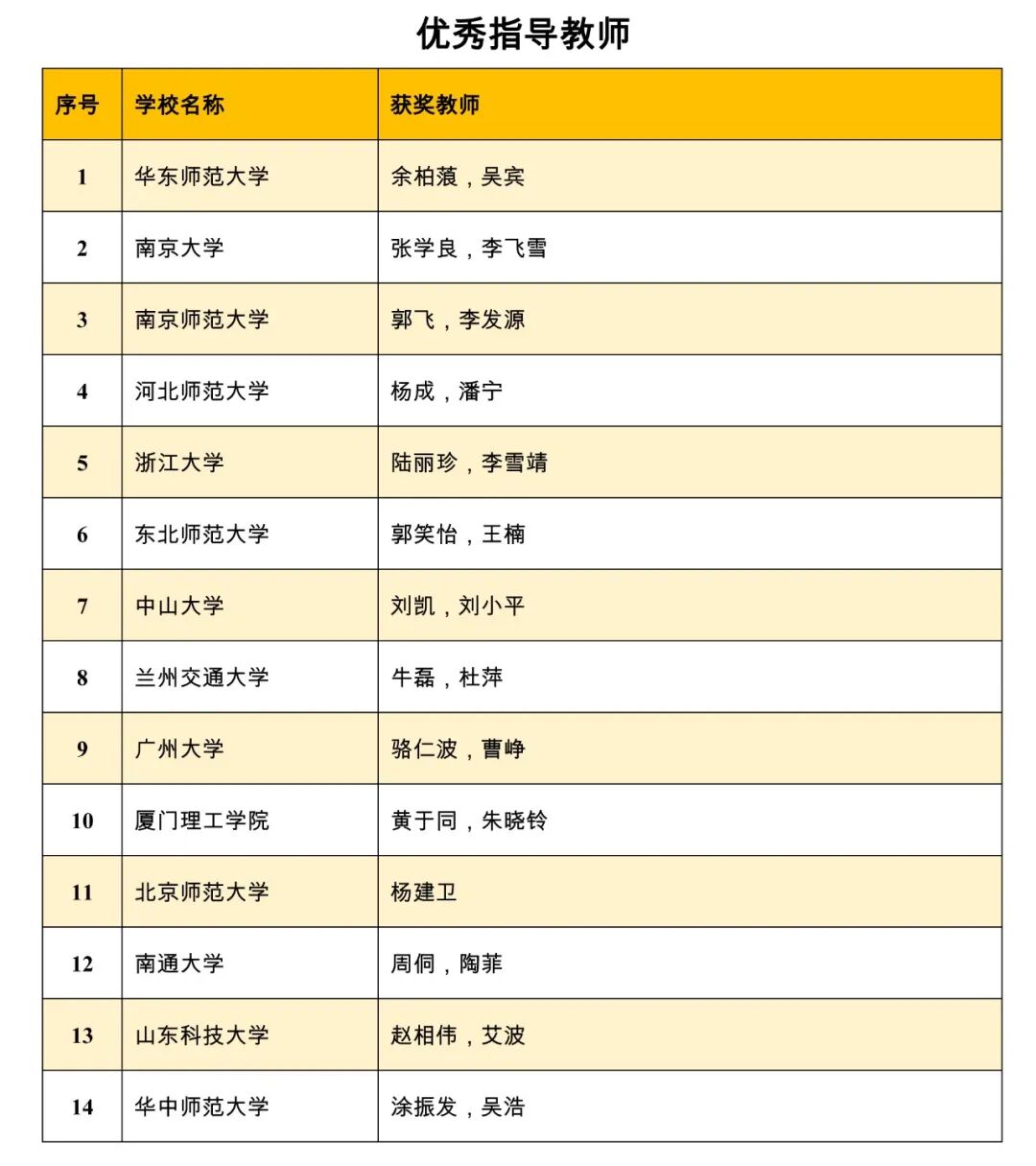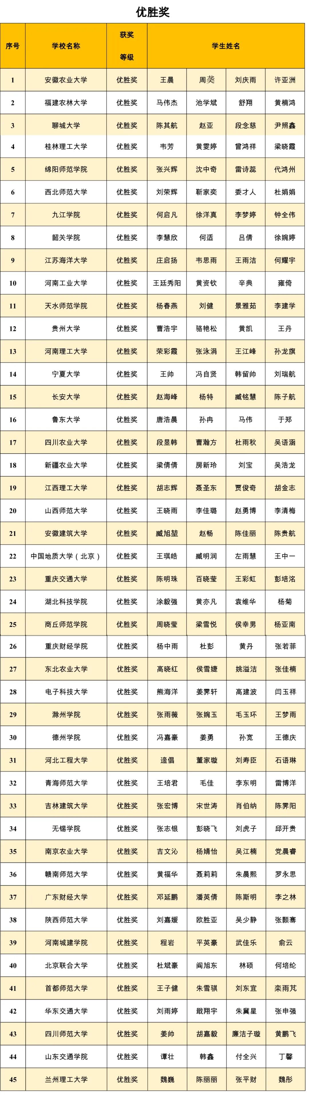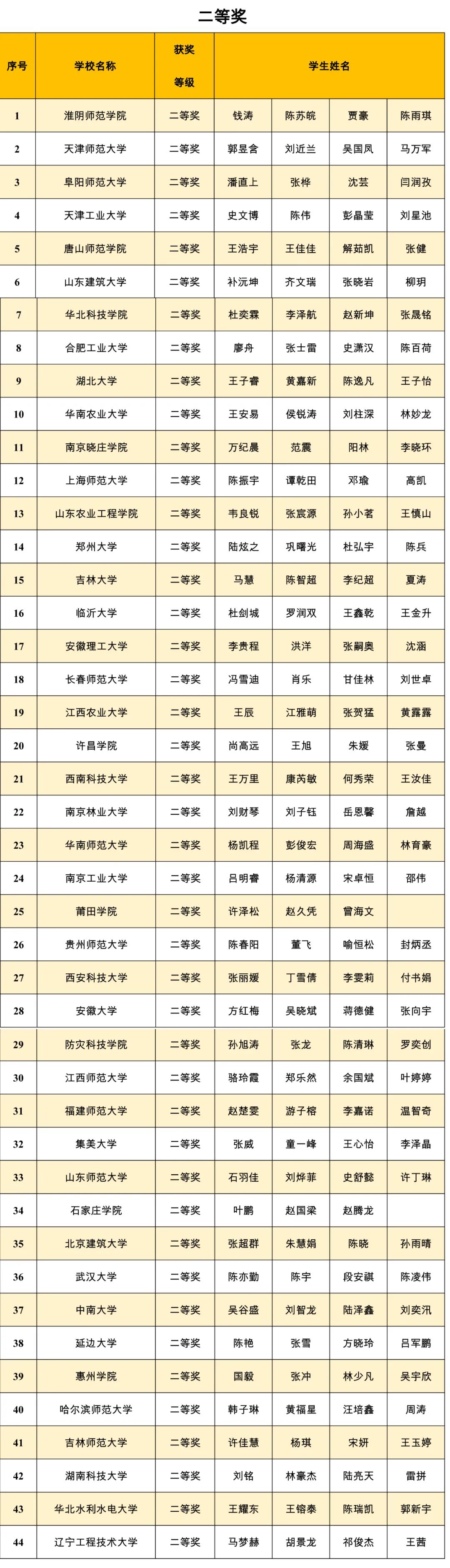 获奖名单