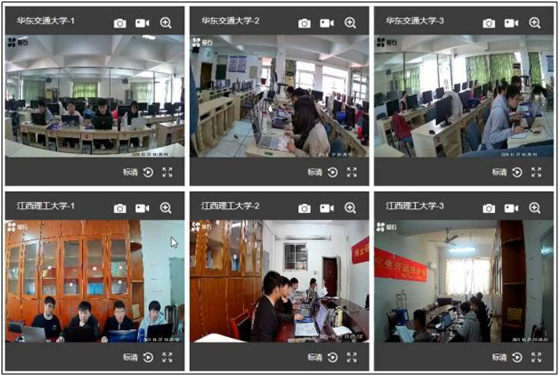 本次大赛分别在空间数据采集编辑与集成处理技能竞赛、空间分析技术应用两段赛程展开角逐,参赛队伍就地设置比赛场地。南京信息工程大学设置5个监考中心,69个虚拟考场,应急联络员、视频和屏幕监考人员共96名分工合作,通过视频画面全程在线监考。