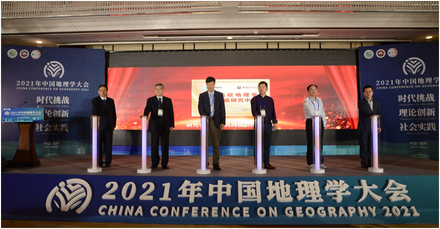 12月13日,2021年中国地理学大会在福州隆重召开。大会开幕式上,中国地理学会、福建师范大学、人民网文华贞观举行联合共建“全国高校地理学课程思政研究中心”(以下简称“中心”)揭牌仪式。学会陈发虎理事长、朴世龙院士、张国友副理事长、董治宝副理事长、福建师范大学陈庆华副校长以及人民网“文华贞观”总经理曹明浩先生共同按下启动开关。