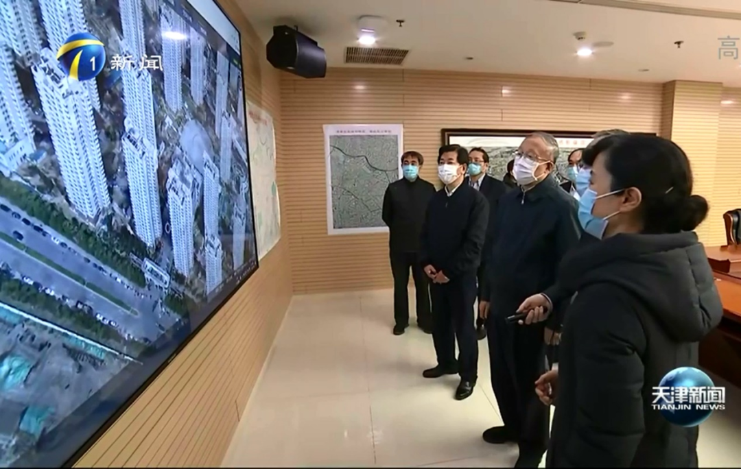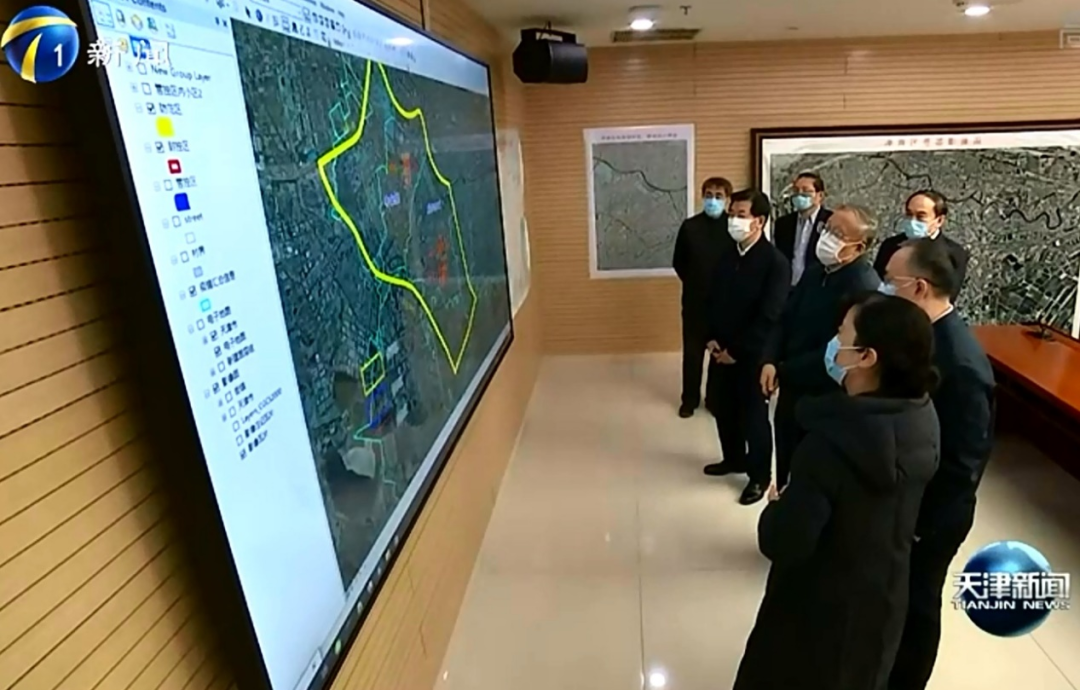 下午3点30分,市委书记李鸿忠,市委副书记、市长廖国勋及市委常委、秘书长金湘军来到中北镇政府疫情现场指挥部现场指挥疫情防控,通过疫情防控指挥平台中的实景三维影像数据、标注的防控区域和疫情涉及人员在津活动轨迹,综合分析研判疫情形势,与相关区主要负责同志通话,对下一步疫情防控工作做出了重要指示。天测公司借助丰富的测绘地信时空信息搭建的系统平台实现了快速定位、多图展现和时空轨迹追朔等功能,满足了本次疫情指挥的需求,得到了市政府、市卫健委、西青区领导的一致肯定。