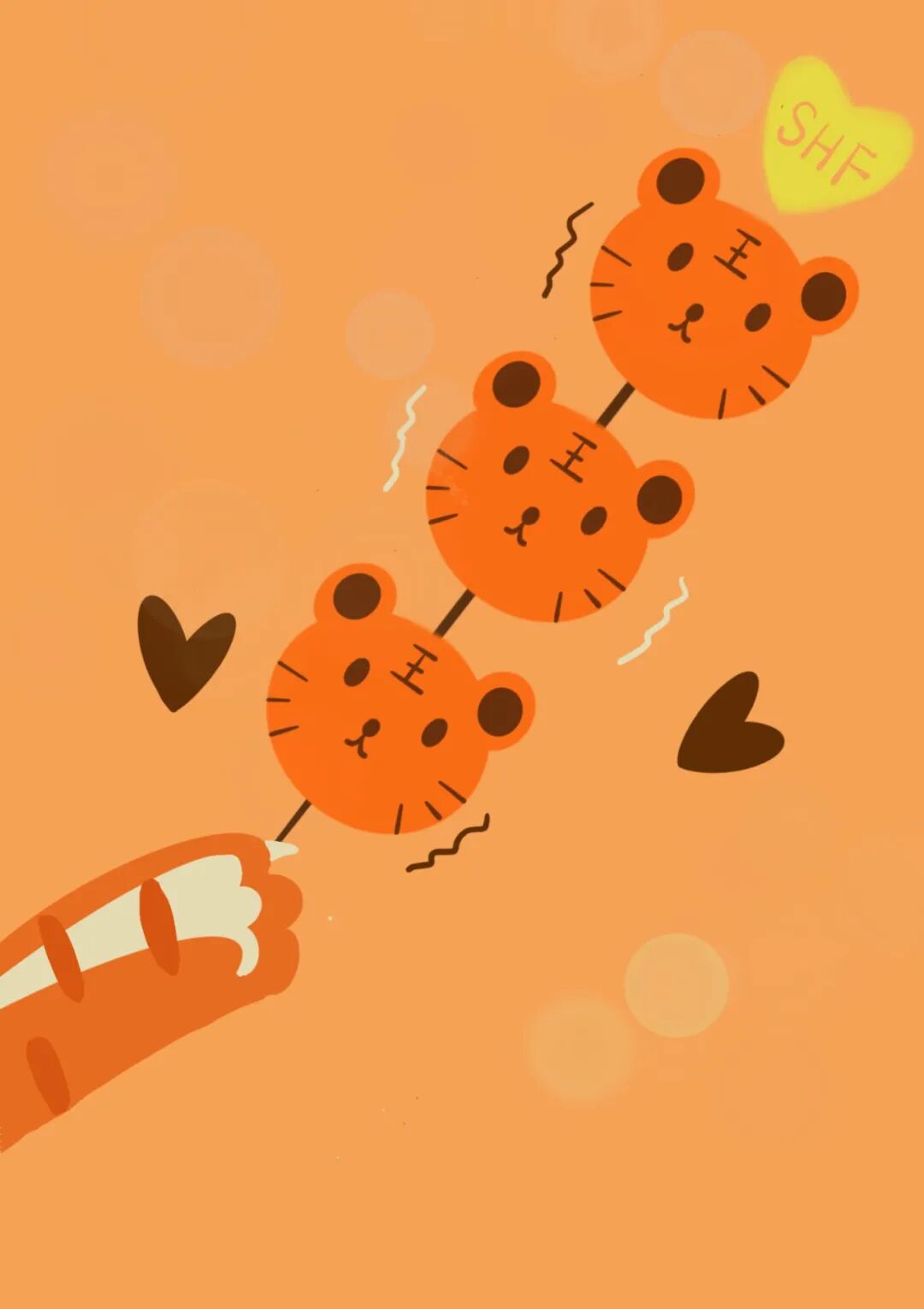 祝慧天地的友人们,新年快乐,阖家幸福,万事如意,虎虎生威,献上手绘小老虎。