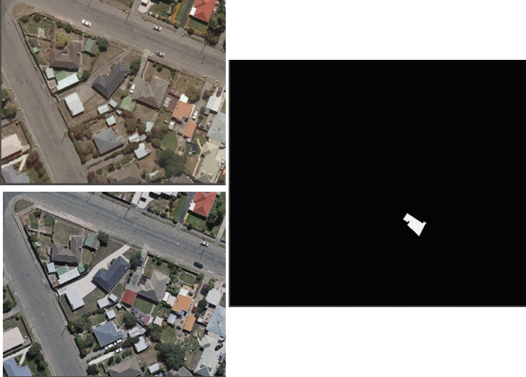 二元变化检测是指对输入的两年份影像进行二值运算(即是否发生变化),基于像素级分类后输出结果,主要应用为土地利用变化等方面。如图所示,基于MapGIS深度学习工具二元变化检测所做出的城市建筑物变化检测的结果图。
