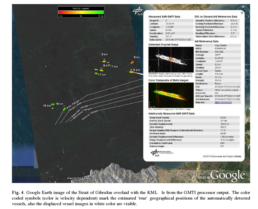 图12 TerraSAR-X卫星SAR影像的舰船动目标指示能力