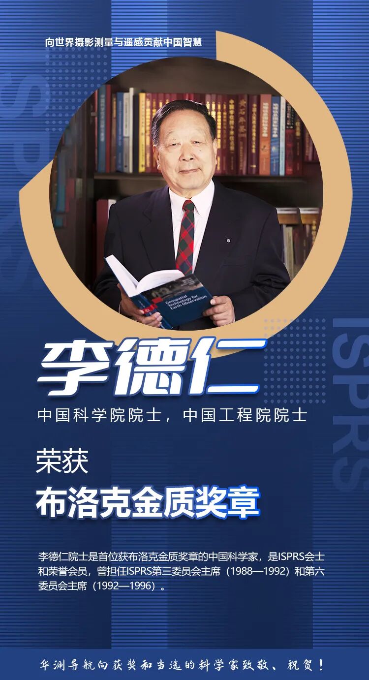 李德仁院士荣获布洛克金质奖章,成为首位获得该项领域内最高学术成就奖的中国科学家。