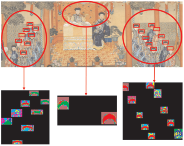 图 5 故宫藏画中头冠颜料隐藏信息提取