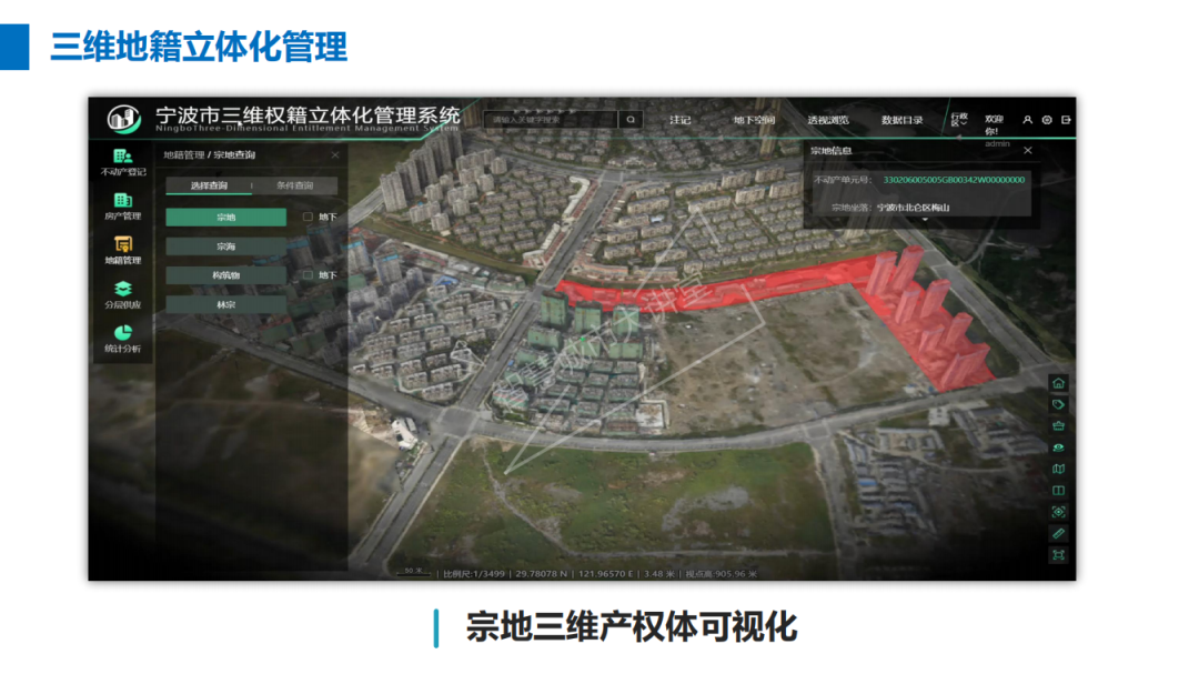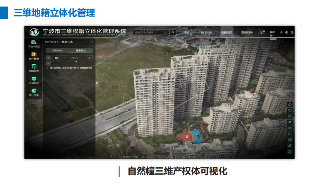 实景三维作为数字孪生城市的空间底座,一直以来得到宁波市市委市政府的高度重视。宁波市作为最早一批开展智慧城市建设的一员,自2009年开始城市三维仿真模型建设,到如今针对地理实体与物联感知也开展了多方面的研究与探索,宁波在实景三维建设上积累了多年的“宁波经验”。报告介绍了宁波市在实景三维建设的机制统筹、规范制定上的探索,以及实景三维数据建设的情况;分享了当下重点推进的实景三维应用,包括自然资源调查监测、国土空间规划管理、城市公共安全等服务场景;并探讨了当下推进实景三维所遇到的工作难点,以及下一步的思考。