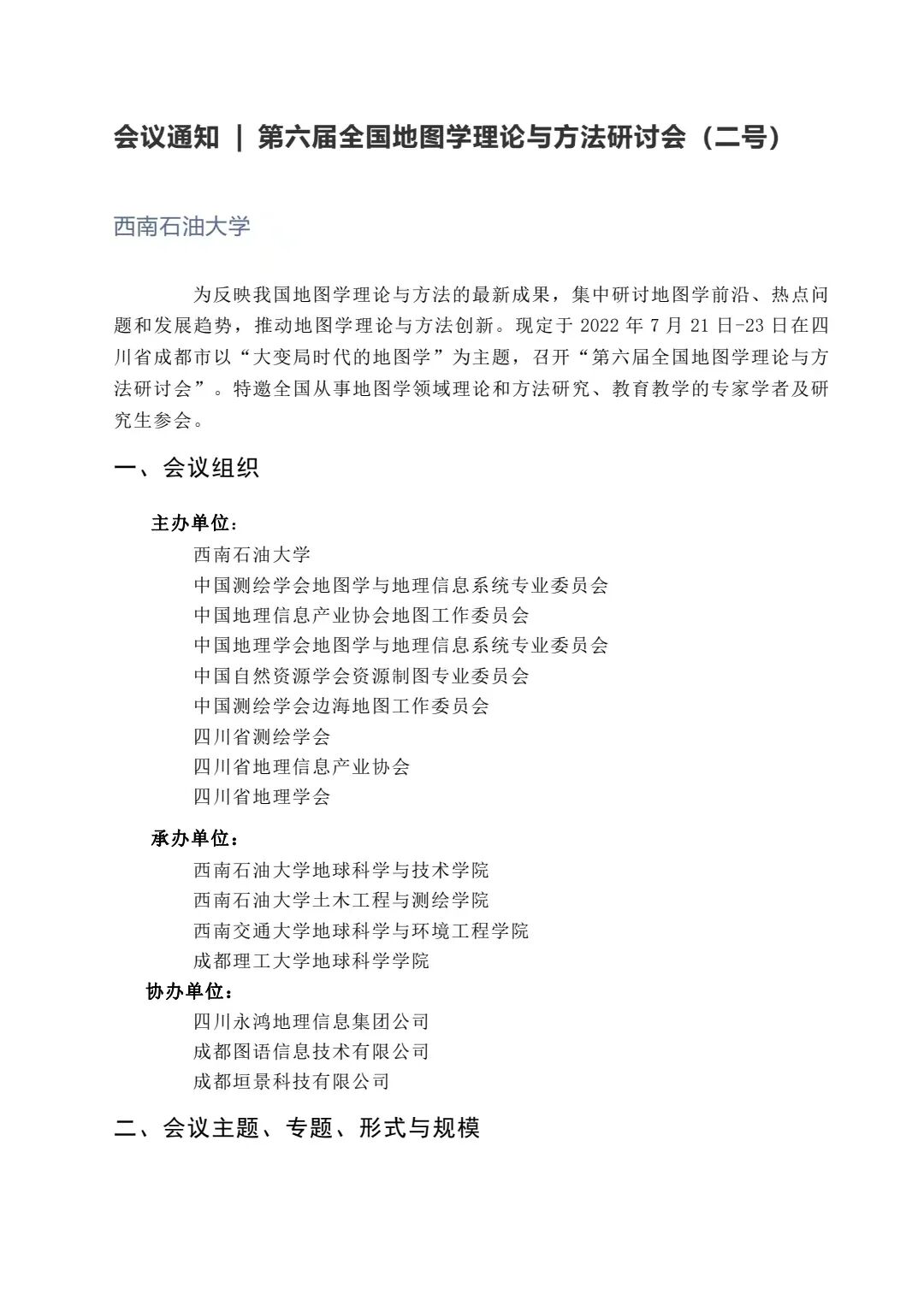 会议通知 | 第六届全国地图学理论与方法研讨会(二号)