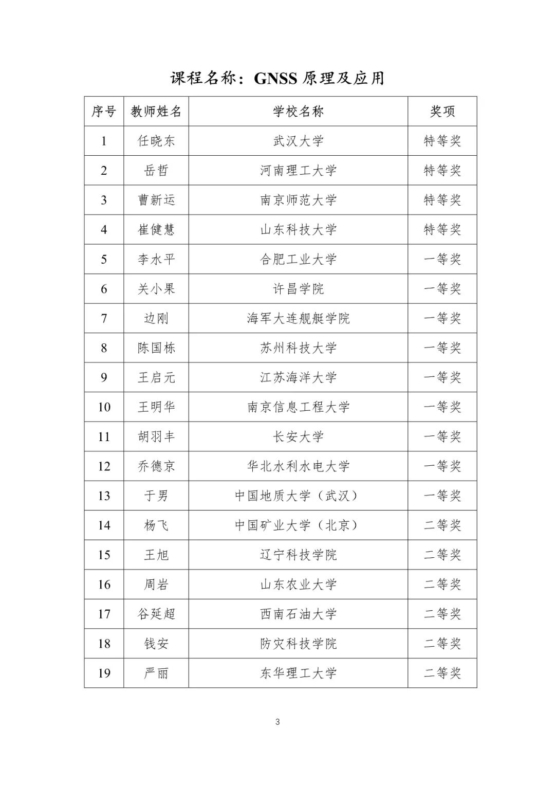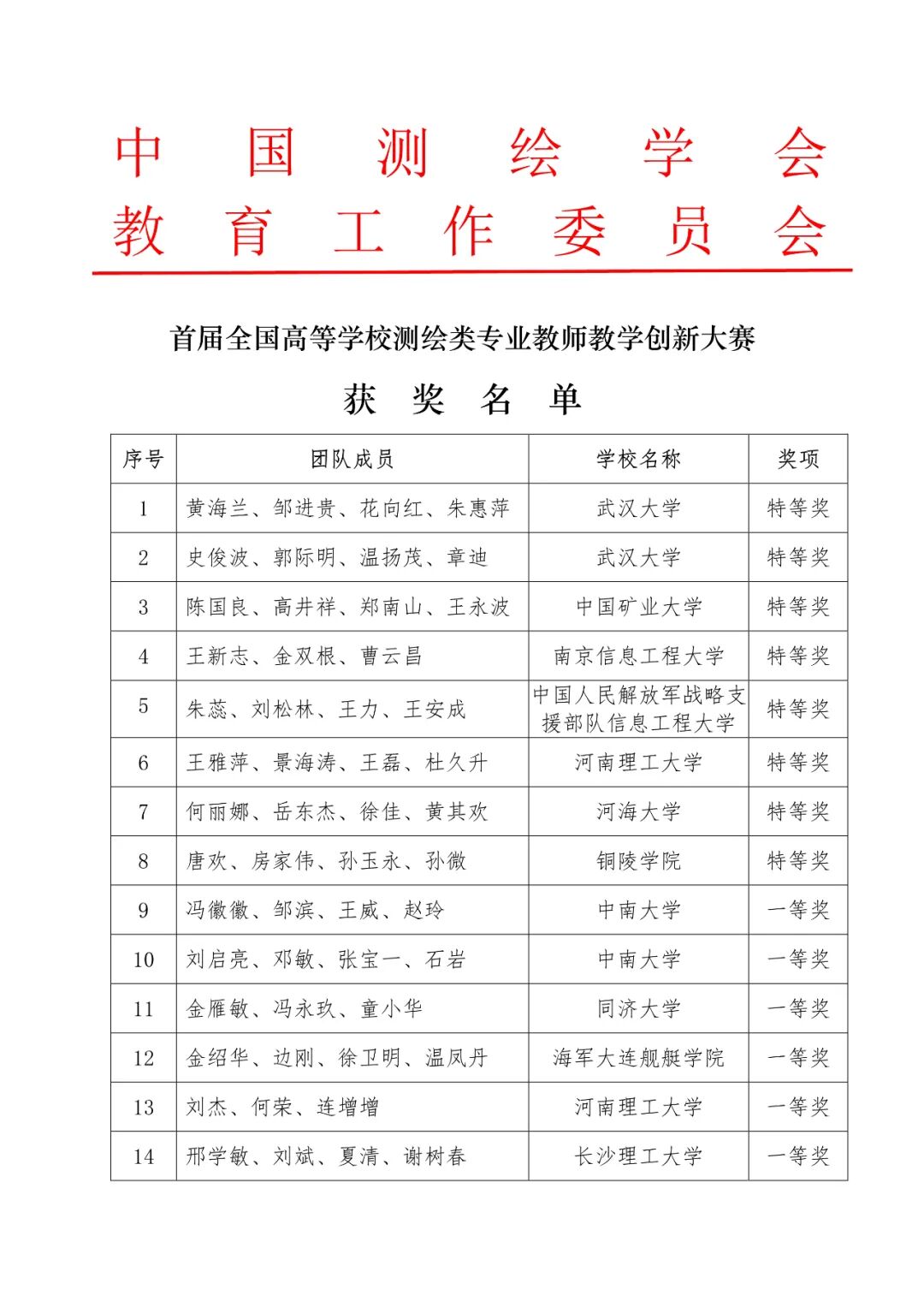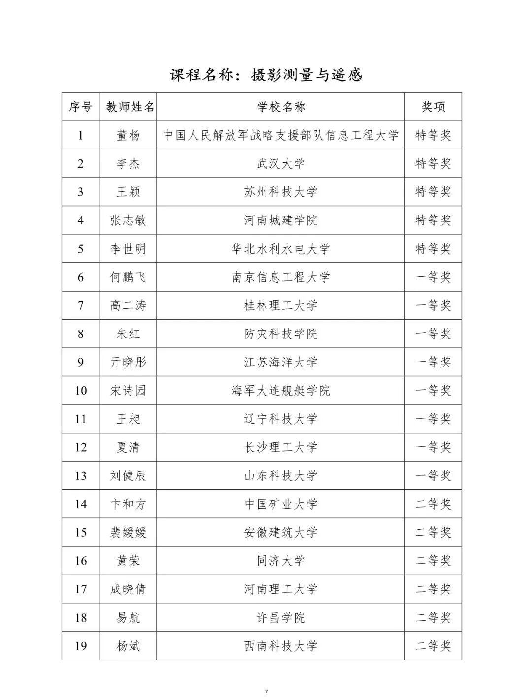 首届全国高等学校测绘类专业教师教学创新大赛获奖名单