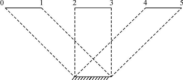 定向片法和EFP光束法平差都有共同的缺点,即对于航线两端的各一条基线范围内只能有两线交会,基高比减小,高程精度要比三线交会区高程精度低一半,严重影响无控定位的高程精度。如图 2所示,按4条摄影基线对应的地面段而言(大约1000 km),三线交会区覆盖两条基线(2—4摄影段),首末基线均为两线交会区(0—2和4—6摄影段)。![]()