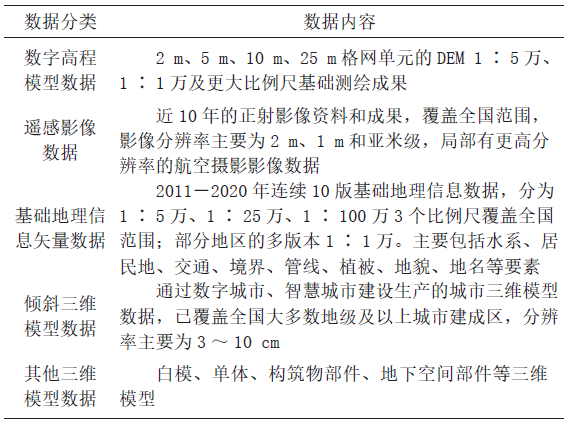 2)三维空间基底数据。主要包括数字高程模型、遥感影像、基础地理信息、倾斜摄影三维模型等数据(表2)。