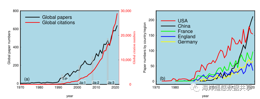 在过去的50年里,卫星测高研究以惊人的速度发展,从最初每年发表不到10篇文献,发展到现在每年发表超过600篇文献,特别是中国学者发表的文献已超过了美国,跃居世界第一位。