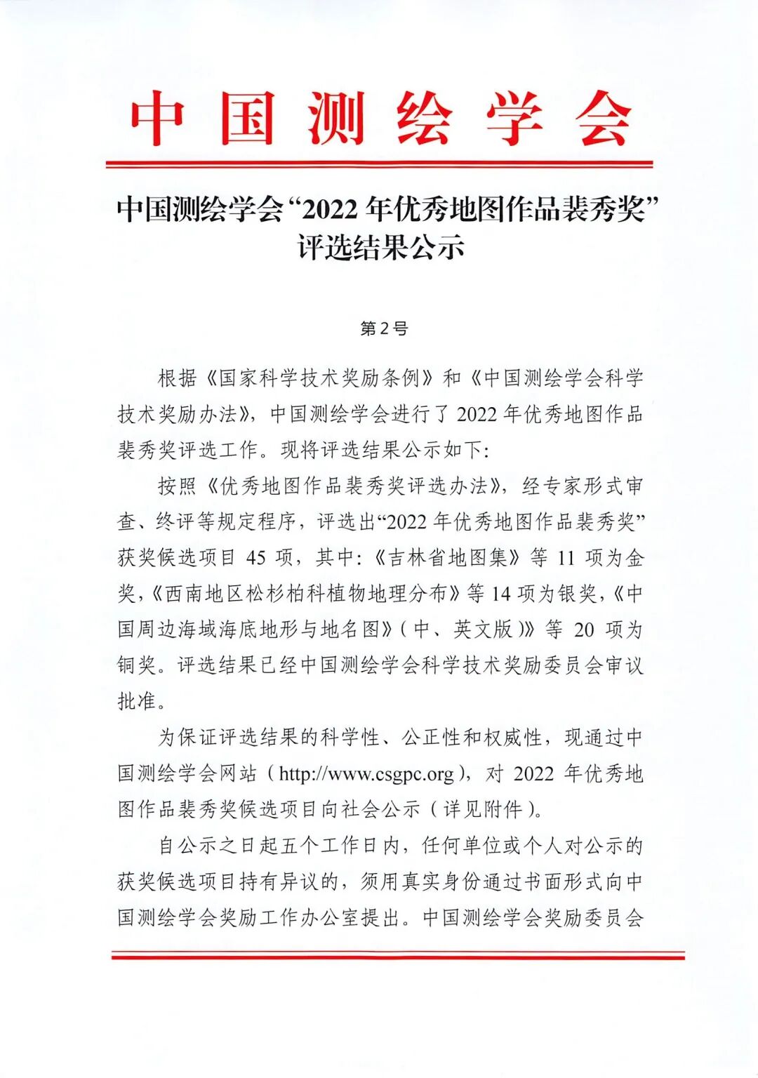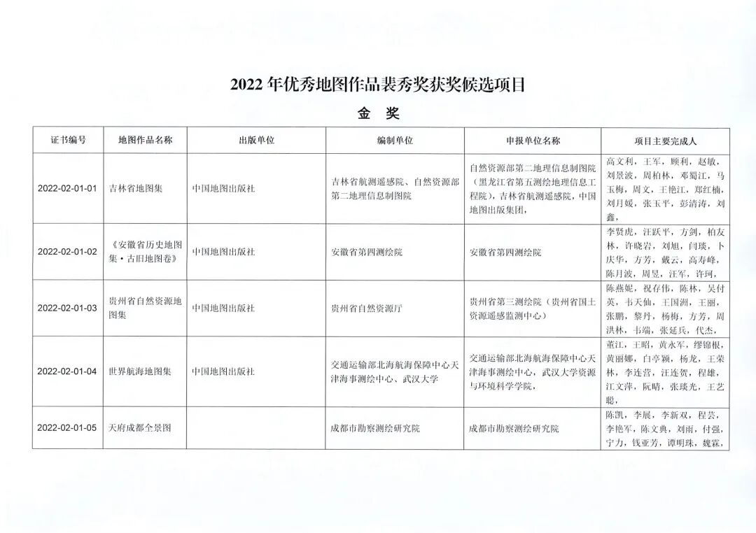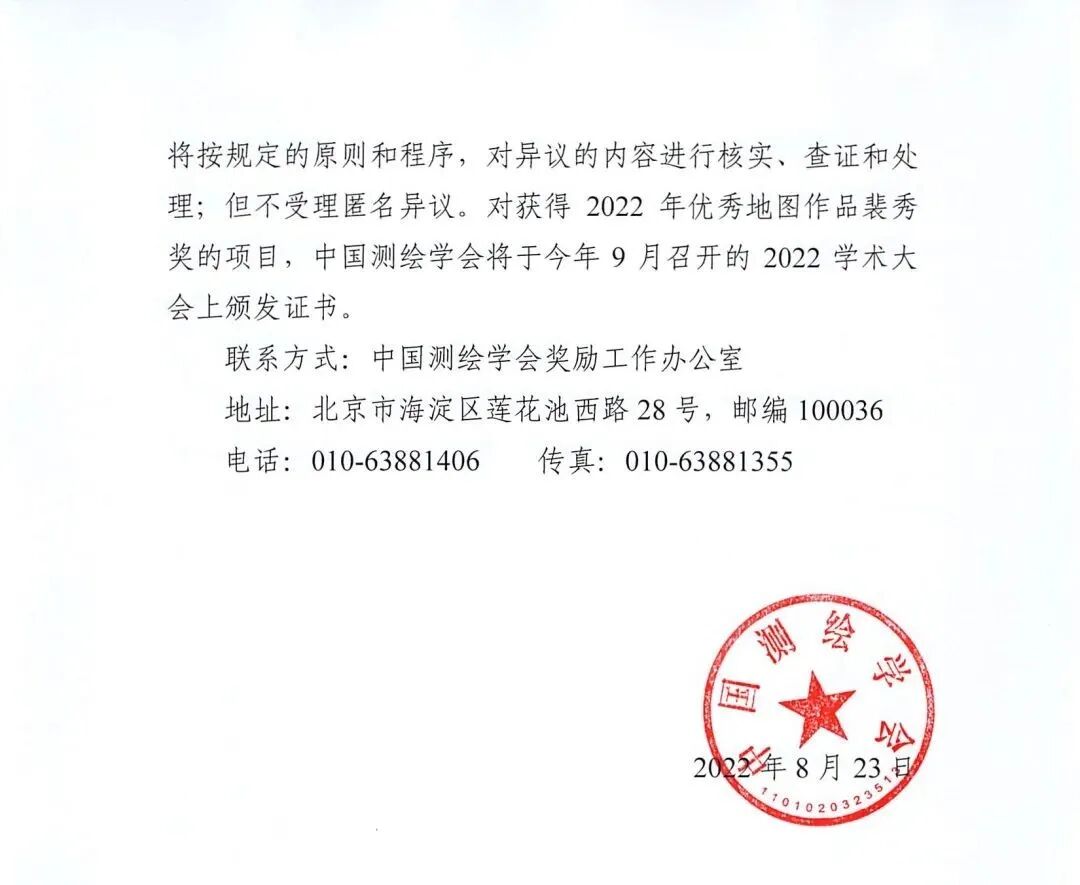 中国测绘学会“2022年优秀地图作品裴秀奖”评选结果公示