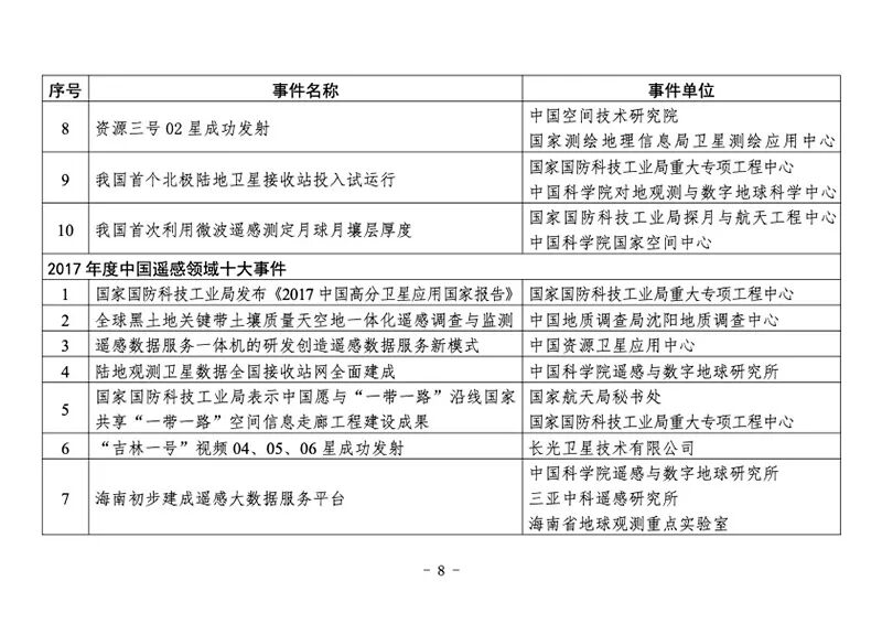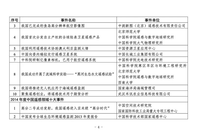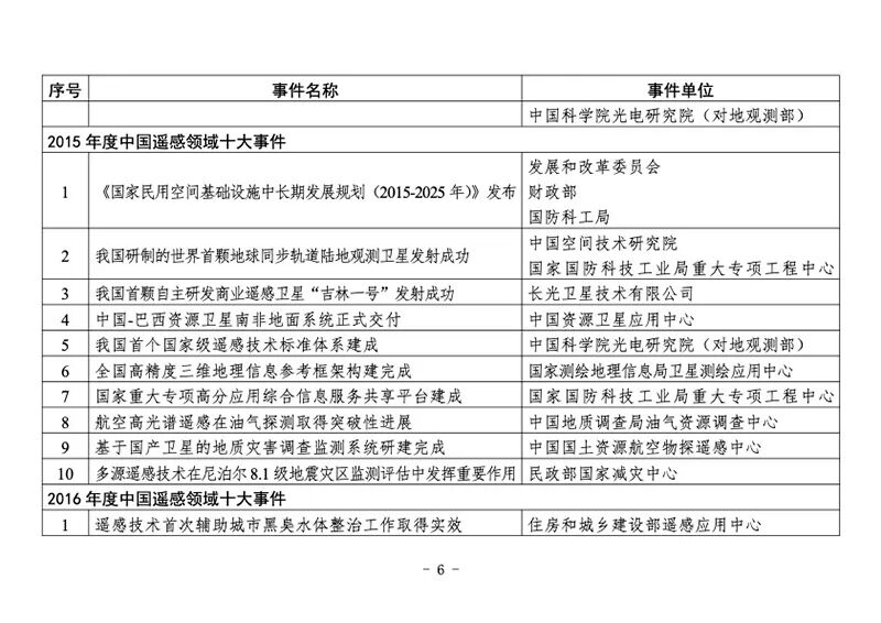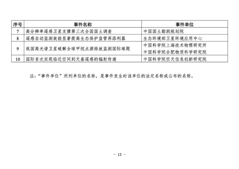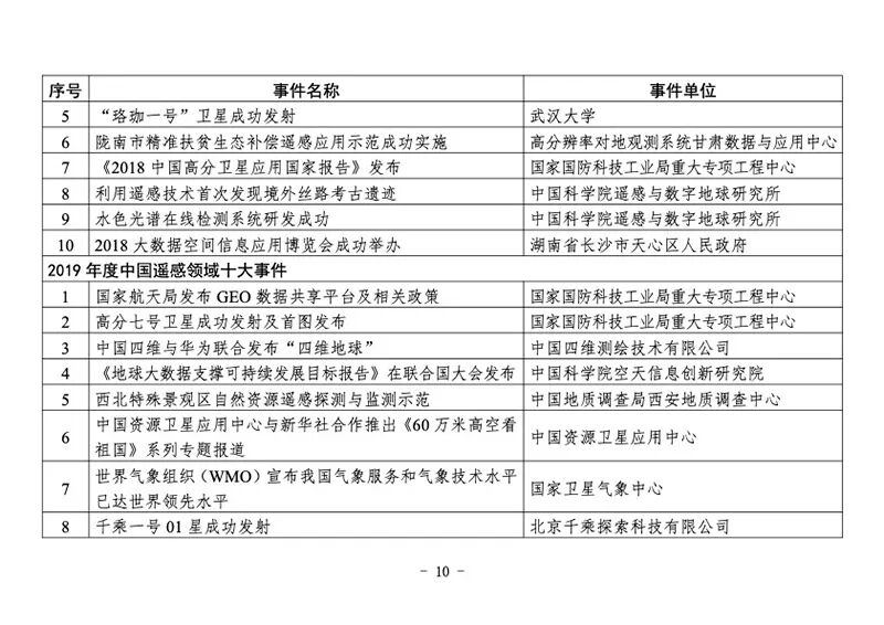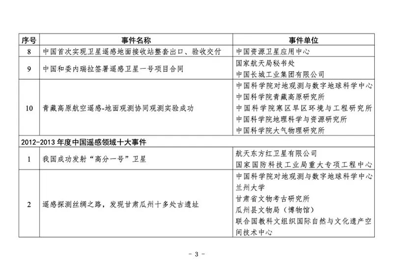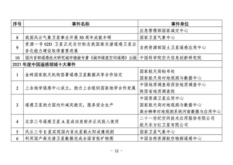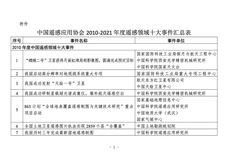 关于 2010-2021 年度遥感领域十大事件内容及其对应单位的公示