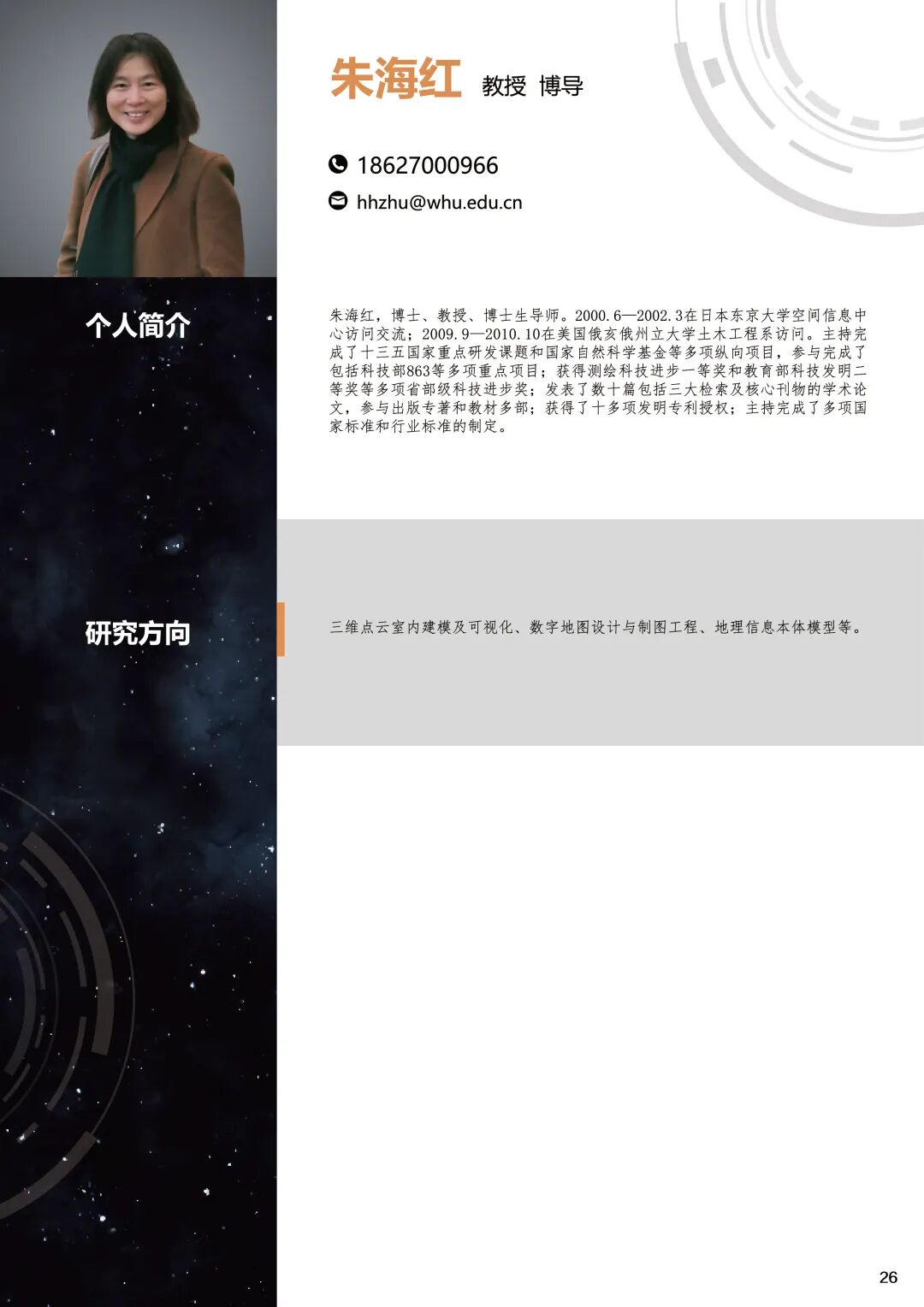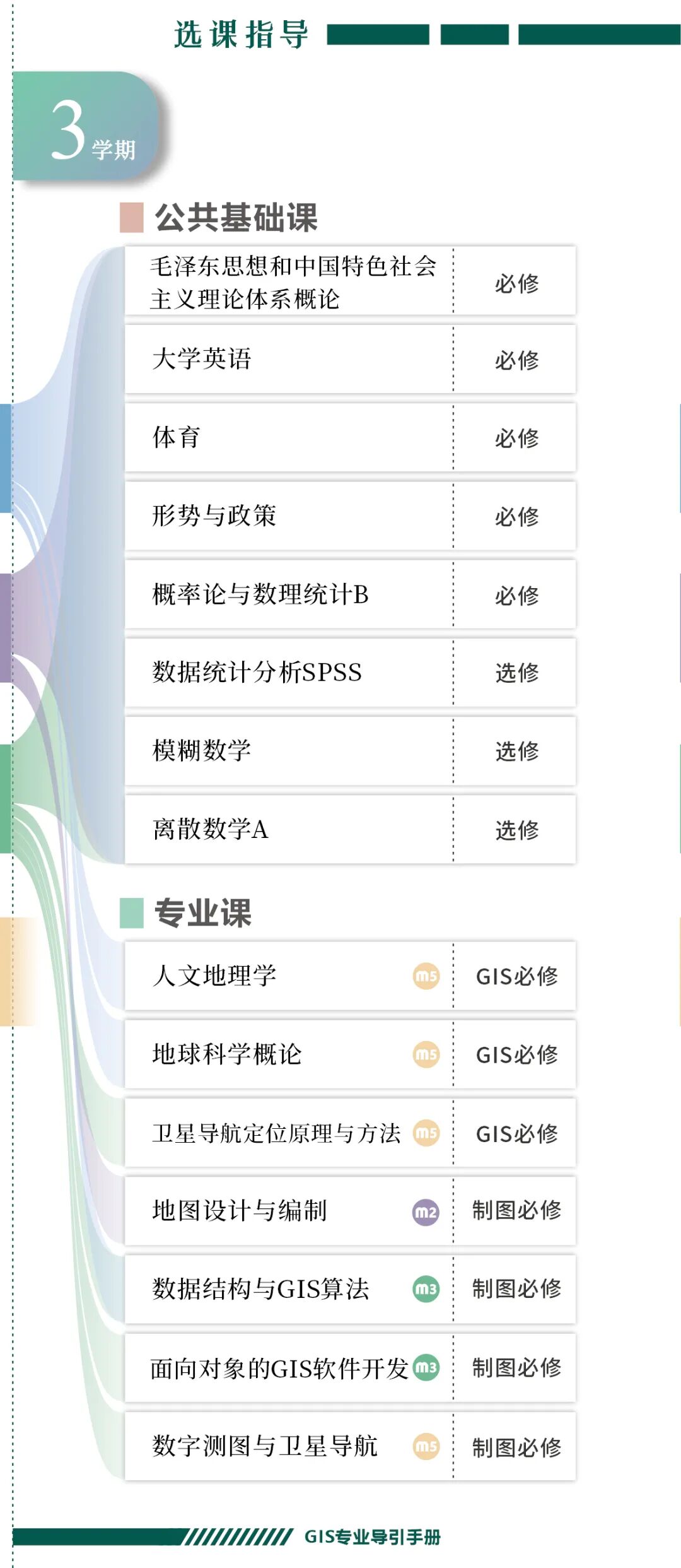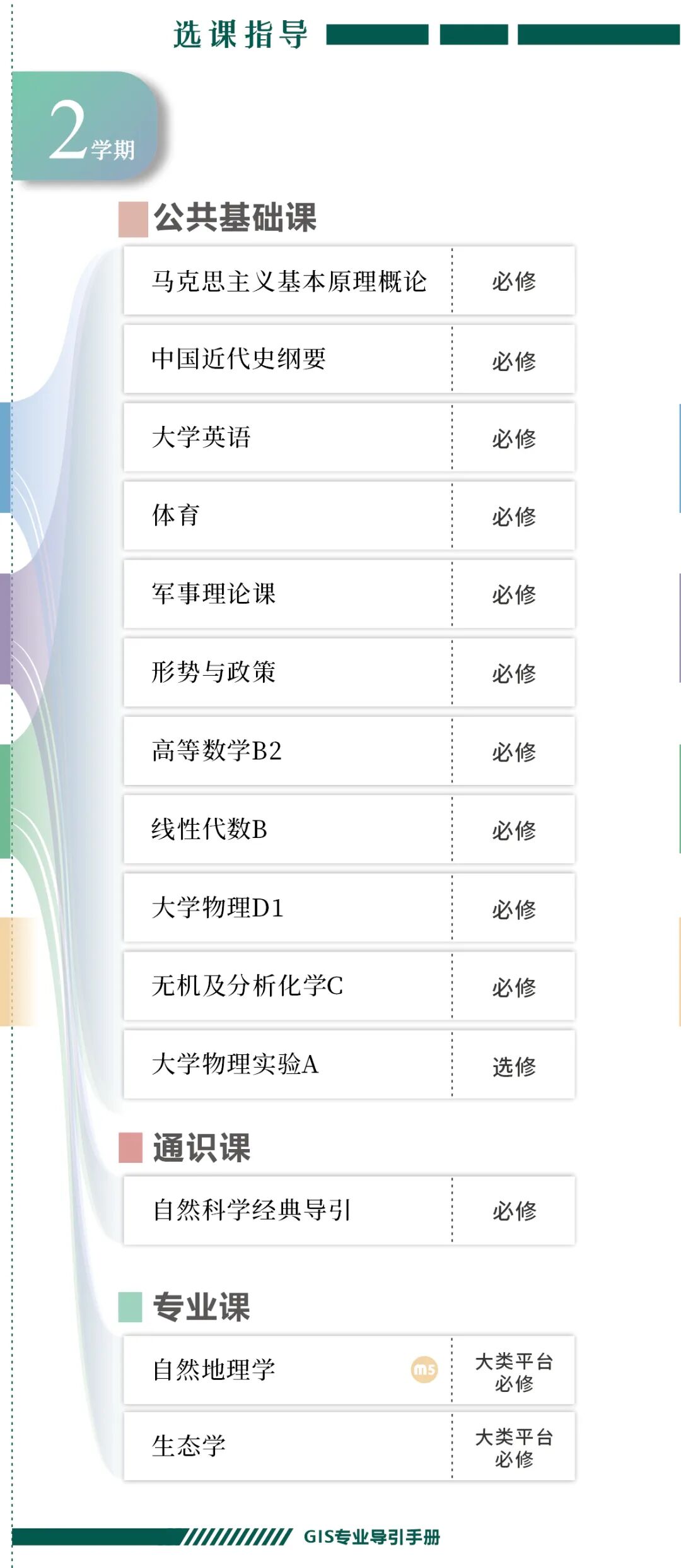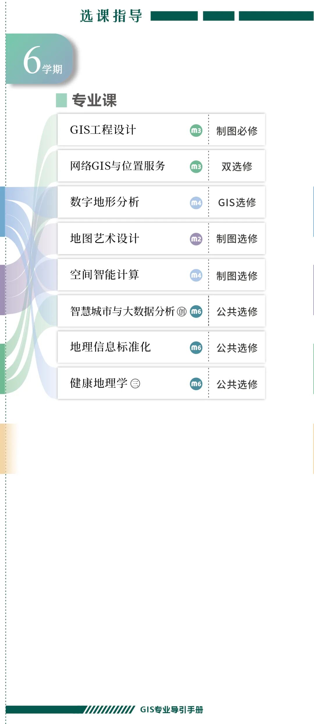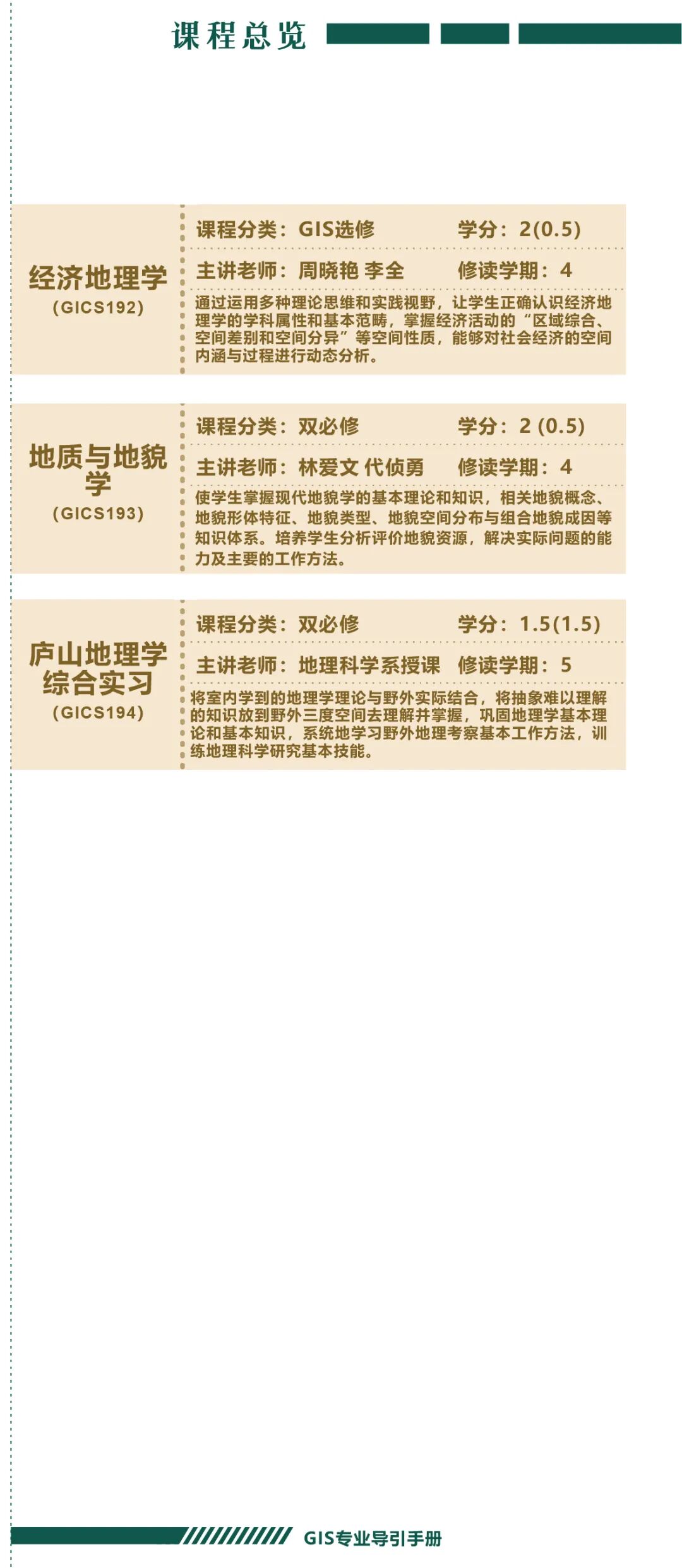 手册为本科生提供课程内容介绍和选课指导,从专业介绍、课程体系出发,详细介绍了地理信息科学专业的课程模块,提供了清晰的课程总览,展示专业强大的师资力量,帮助同学们深入了解专业培养方案和课程体系。
