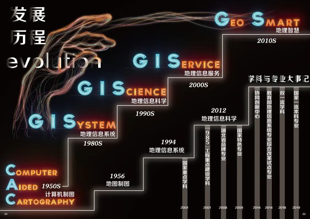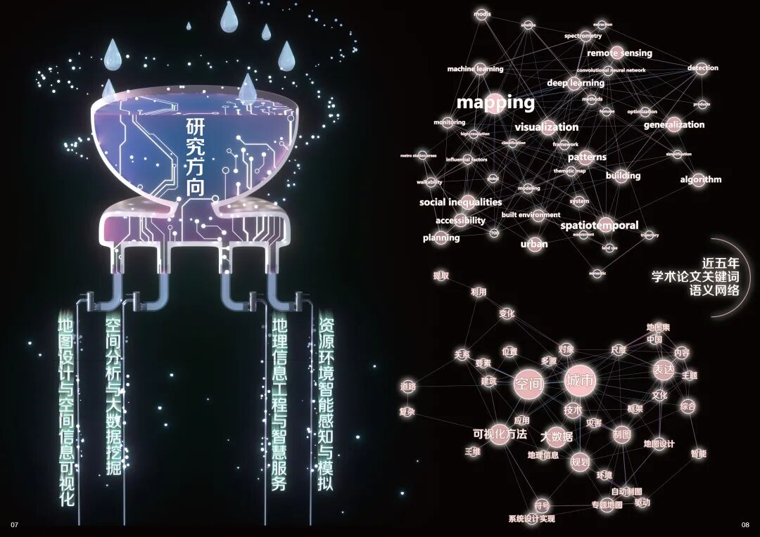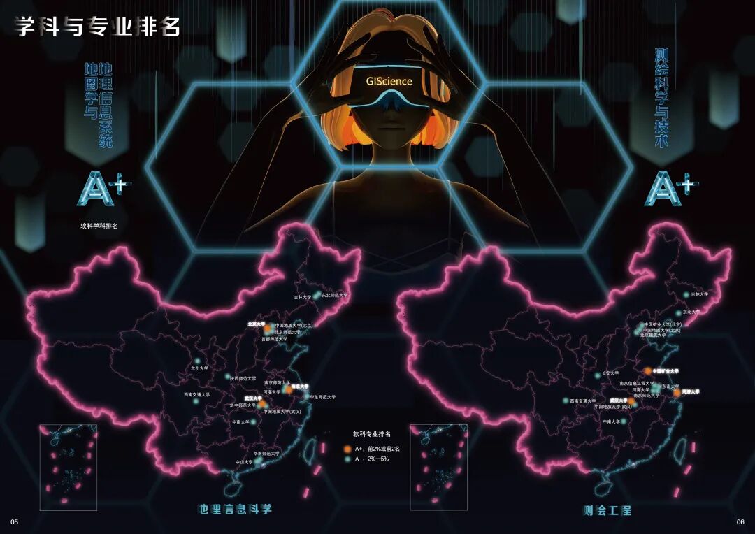 两本图册的设计印制体现了学院“以学生为本”的教育理念,也是将专业学科体系与制图技术应用巧妙融合,通过图集图表的形式深层解读地理信息专业的学科架构和培养方案,有助于不同阶段的学生了解并掌握学科内容和发展前景,促进基础教育和人才培养。