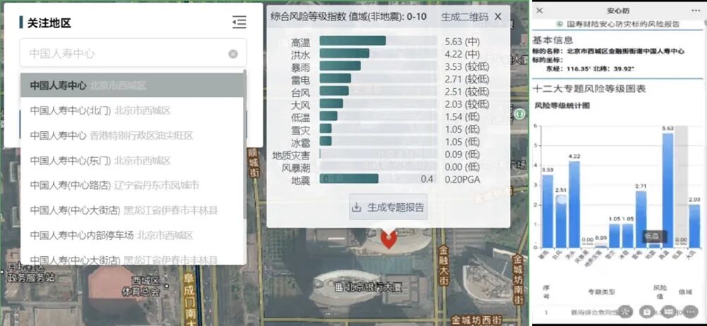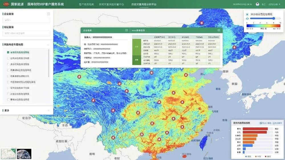 同时,平台推出的客户版将客户标的数据和灾害风险数据紧密结合,服务于集团型统保客户,推动客户从“要我防”向“我要防”转变,赋能客户实现灾害风险的自我排查和管理。