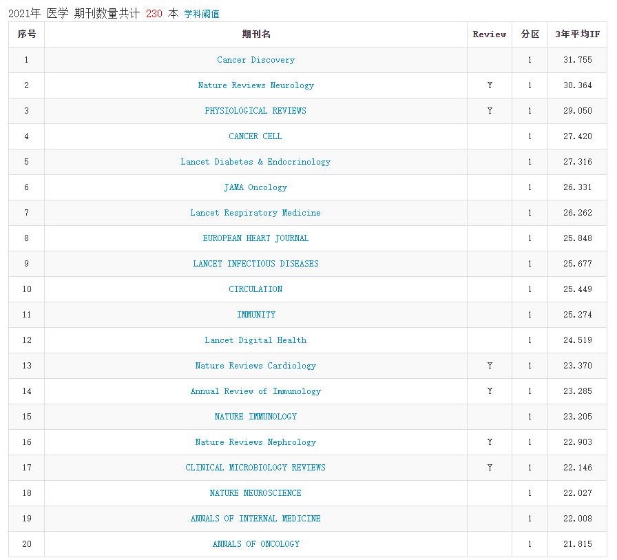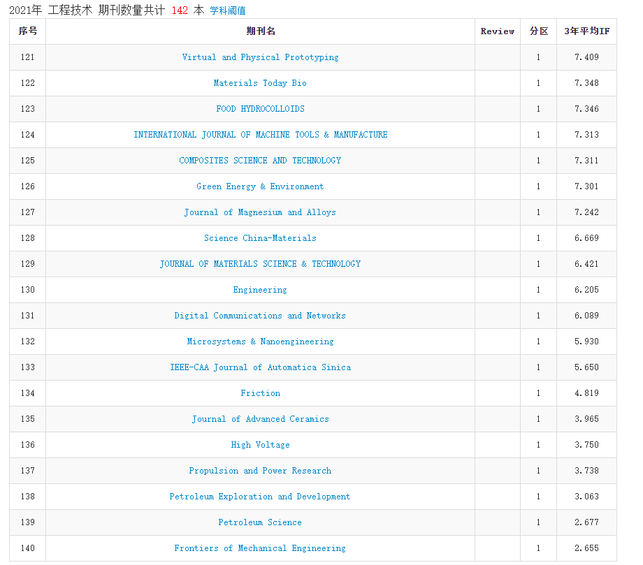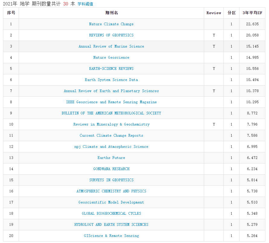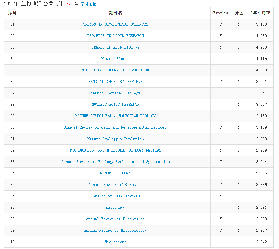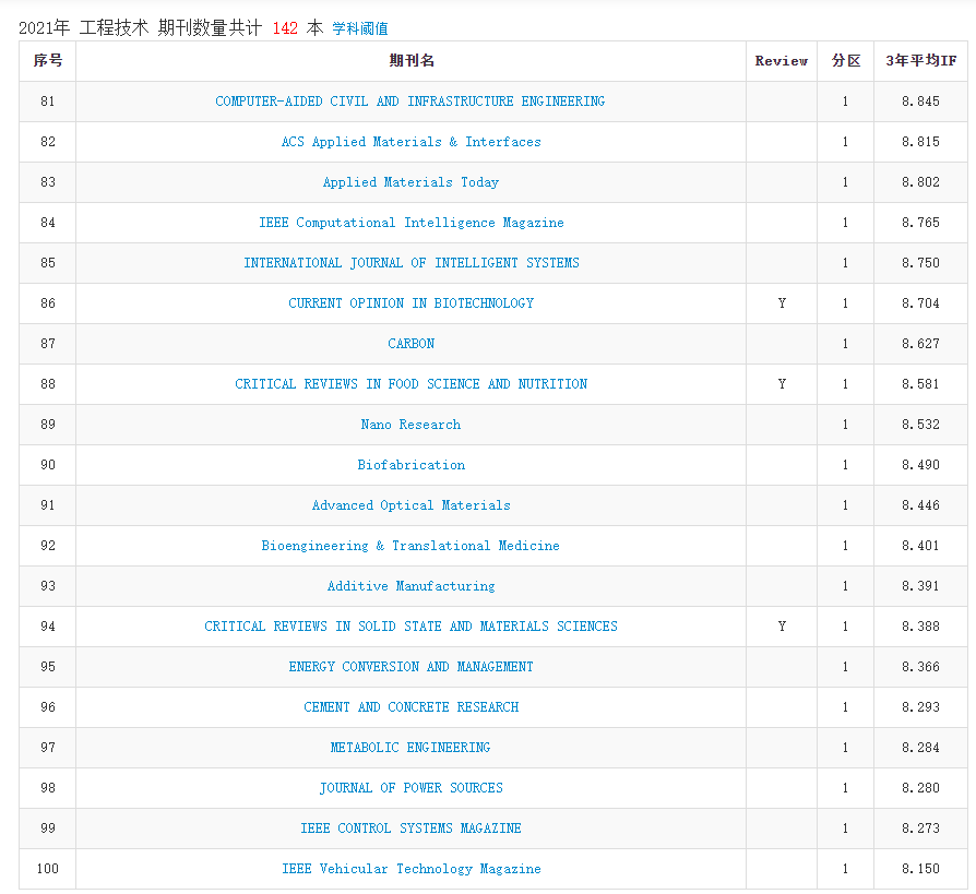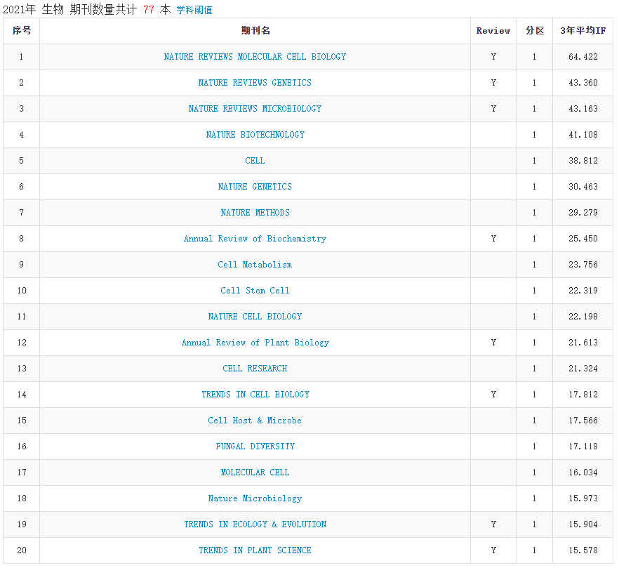 1、今年是发布基础版的最后一年,2022年起将只发布升级版。所以2022年开始,大家不必再纠结是看基础版还是升级版,科研评价更加明确。2021年期刊分区表收录期刊为自然科学期刊(SCIE)、社会科学期刊(SSCI)和ESCI收录的中国期刊(自科+社科) 。2021年期刊分区表,通过期刊引用关系生成学科结构,参考了国务院学位委员会、教育部印发《学位授予和人才培养学科目录(2011)》的学科内涵和外延,设置18个大类:数学、物理与天体物理、化学、材料科学、地球科学、环境科学与生态学、农林科学、生物学、医学、心理学、计算机科学、工程技术、管理学、经济学、法学、教育学、人文科学和综合性期刊。注:人文科学,只包括被SCIE和SSCI收录的哲学、历史、语言学和新闻传播学期刊,未囊括 A&HCI 的期刊。1. 国产期刊继续扶持,National Science Review、Science Bulletin依然是综合性期刊一区;2. 两大化学综述期刊Chemical Review和Chemical Society Review依然霸榜化学类期刊前两名,新刊Chem在化学类非综述期刊中,仅次于Nature Catalysis和Nature Chemistry,超越JACS和Angew;4. Nature Energy近三年平均影响因子53.784,在工程技术类非综述类期刊第一名;第一名为Nature Reviews Materials,近三年平均影响因子70.649;5. Joule入选工程技术类第四名(去年第六),仅次于Nature Reviews Materials,Nature Energy和NATURE MATERIALS,高于Nature Nanotechnology;6. Nature Sustainability在环境科学与生态学类别中排名第一!7. Research去年是四区,今年直接变成一区!综合性期刊