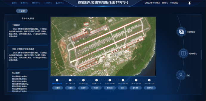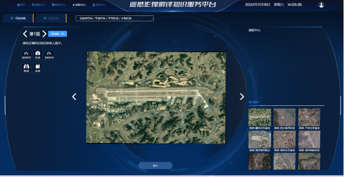解译中心,汇聚领域专家制作的权威性卫星影像解译实例百万余条,具备多领域目标解译训练数据的快速拓展能力,形成了业界最大的卫星影像目标解译知识库;提供全品类目标解译图谱,以及设施与组成、装备与型号、共性与特征、分类与比较相结合的学习模式,达到举一反三、融会贯通的学习效果。
