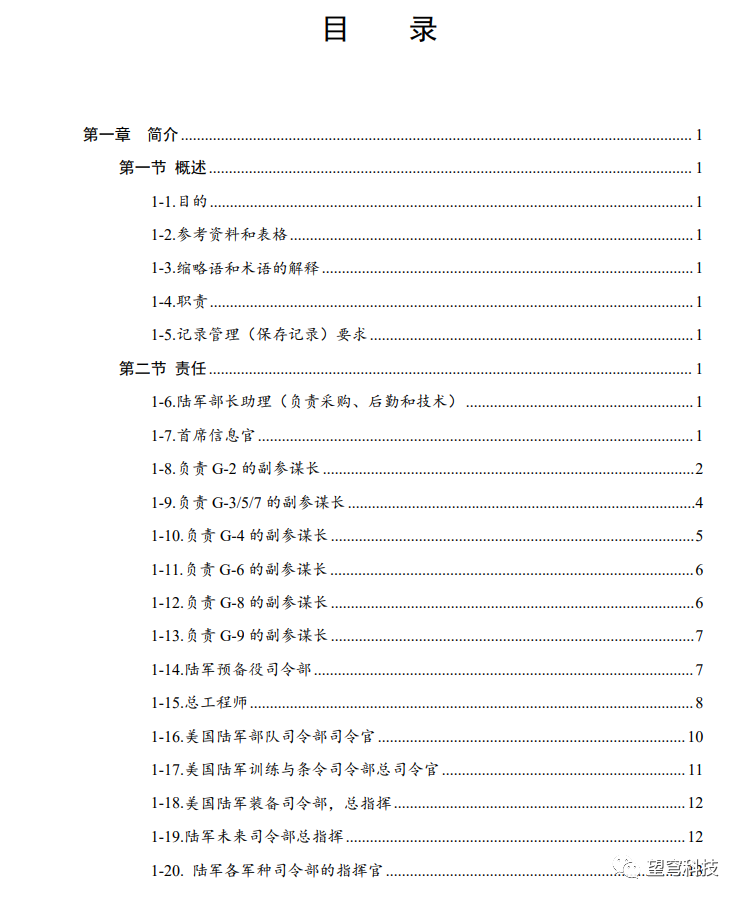 该条例全篇近3万字,由4章和3个附录构成。第一章是简介,概述了各级机构和主管在地理空间情报作战和活动中的职责;第二章是治理和互操作性,简要介绍对地理空间情报和地理空间信息的不同权限和政策管辖;第三章是收集、分析、生产、数据、支持和服务,规定了陆军各个梯队在地理空间情报和地理空间信息与服务的生命周期的职能和权限;第四章跨机构认证和谍报技术,规定了目标坐标测量认证和项目认可以及国防部地理空间情报专业认证程序。附录A罗列了相关的参考文献,附录B地理空间信息和服务要求提交格式,附录C内部控制评估。词汇表给出大量的缩略语和名词术语。