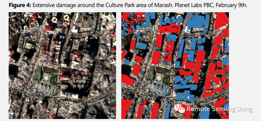 2月6日土耳其发生地震后,微软团队开始利用人工智能(AI)方法和高分辨率卫星图像来评估受灾地区建筑物的受损程度。具体而言,微软与土耳其内政部灾害和应急管理主席团(AFAD)合作,利用灾害发生前3天的卫星图像,对土耳其东南部四个城市的建筑水平损失进行了评估。估计,这四个城市有3849栋建筑受损/被毁。发现马拉什市受到的影响最严重,该市7.44%的建筑受到卫星图像可见的一定程度的破坏。